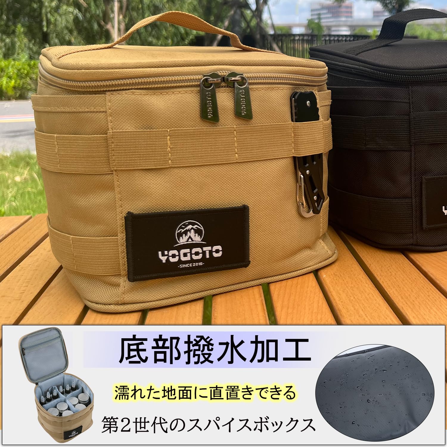 【YOGOTO】 スパイスボックス アウトドア キャンプ BBQ 調味料ケース 仕切付き (ブラック/カーキ色-2点セット)