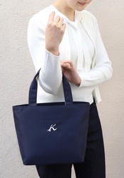 ハリのあるナイロン素材にK刺繍をしたシンプルなデザインのトートバッグ。持ち手裏のさり気ないカラーコンビがポイントです。口元はファスナーでしっかり閉じることができ、内・外ポケット付きで収納スペースも充実。B5サイズがゆったり入るサイズ感です。サブバッグとしてもおすすめです。
