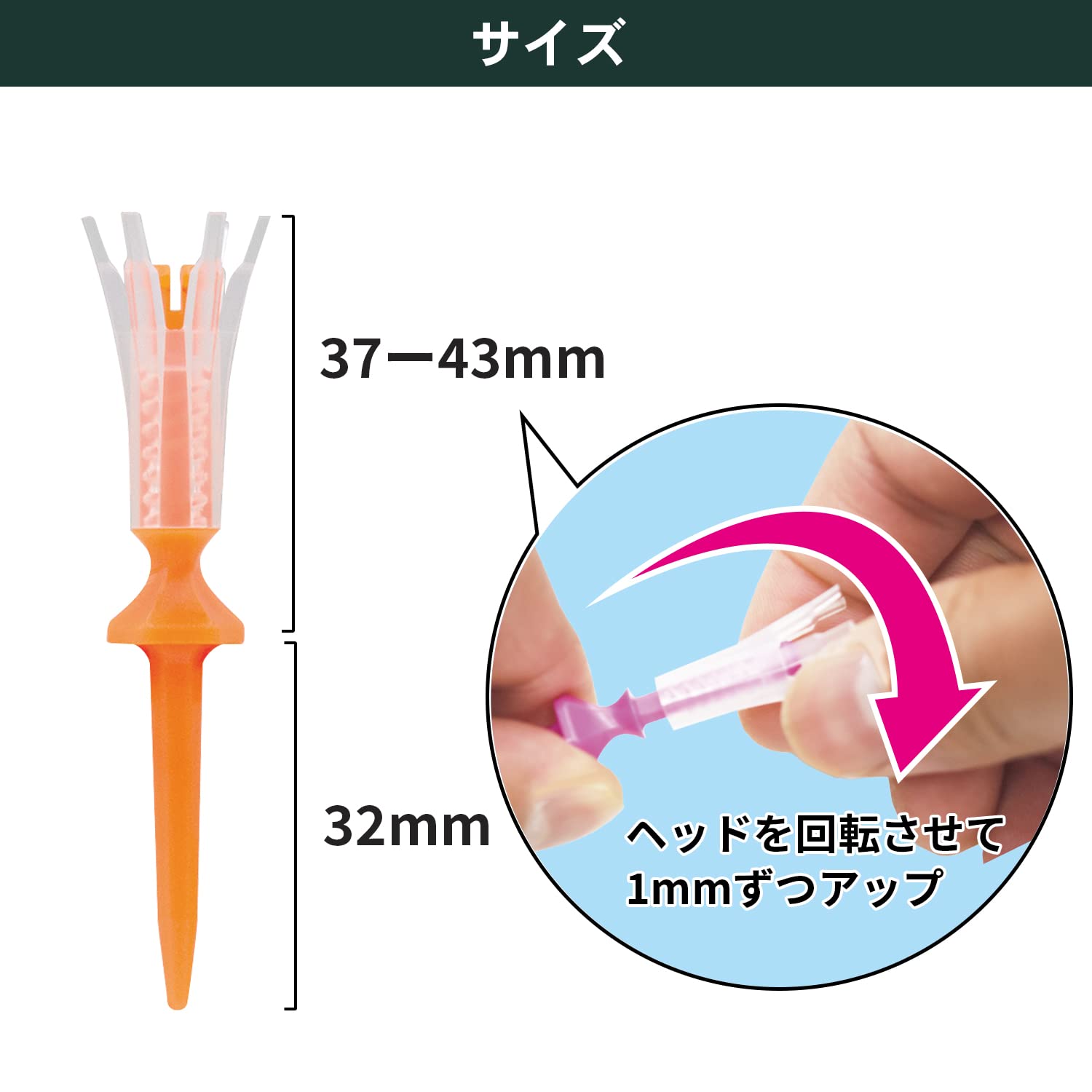 ・ヘッドを回転させて1段階(1mm)ずつ高さ調整可能