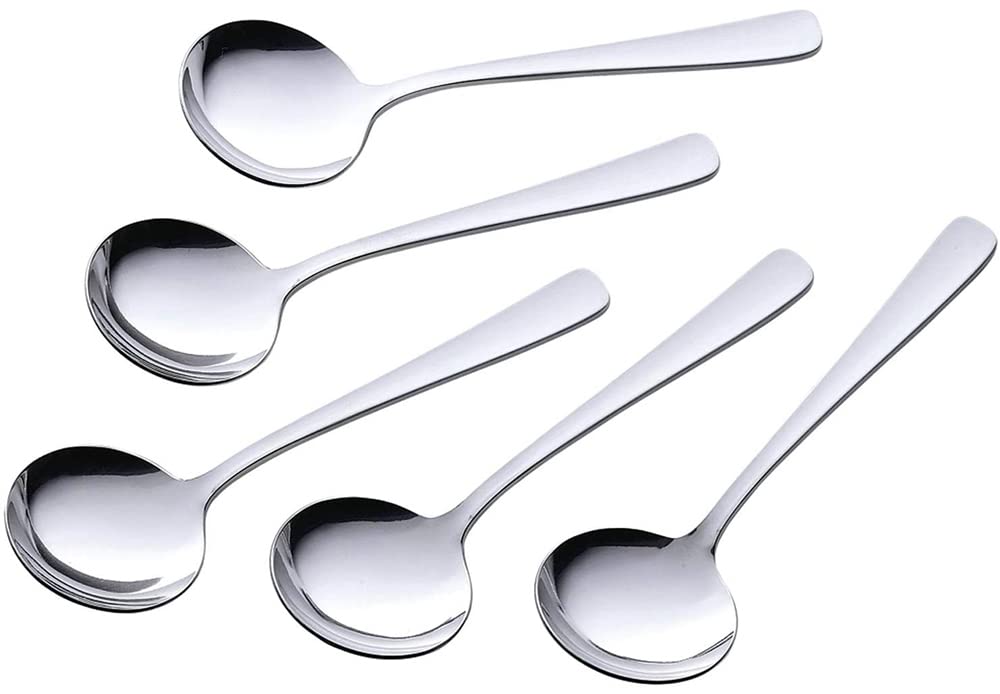 下村企販 スプーン スープスプーン 5本組 【日本製】 食洗機対応 指紋が目立ちにくい すくいやすい シンプルなデザイン 全長14.7cm カップスープ ブイヨンスプーン ステンレス TSUBAME 燕三条 40249 | geisha Cat*