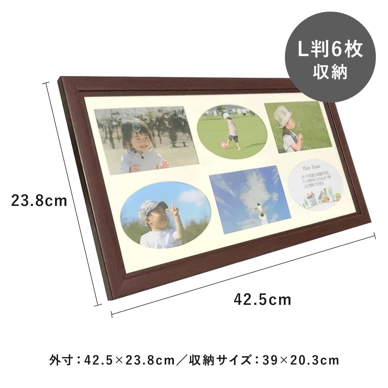 互陽 多面 フォトフレーム ファミリー ワイドタイプ 写真額 L判 6枚 卓上 壁掛け 写真立て 木製 フレーム ブラウン