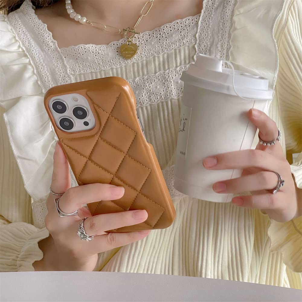 iPhone14 ケース 14pro ケース 14plus 15plus ケース 14promaxケース iPhone専用ケース マトラッセ ケース キルティング ケース 耐衝撃 ワイヤレス充電対応 オールインクルーシブ落下防止 女性男性使える 韓国 ダイヤモンド格子(ブラウン,iPhone14Plus/15Plus)