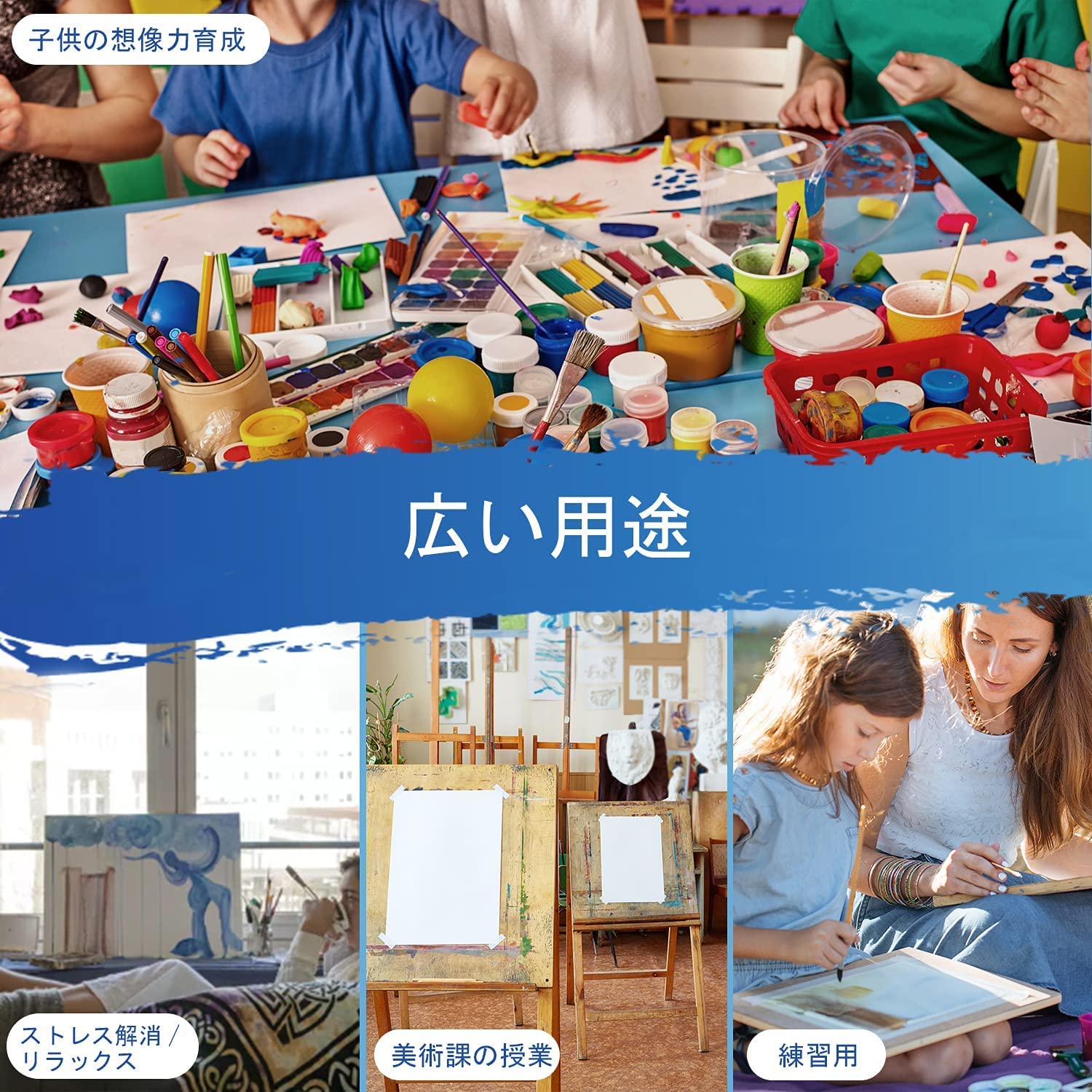 ストレス発散及び暇つぶし:キャンバスの面積が狭いので、サラリーマン達のストレス発散の用品として、結構おすすめです。素人でも絵の具の浪費を心配せずに、お気軽に絵画を楽しみできます。またお年寄りはお一人の場合、ご趣味を養うと同時に、暇つぶしとして、本製品も大変おすすめです。