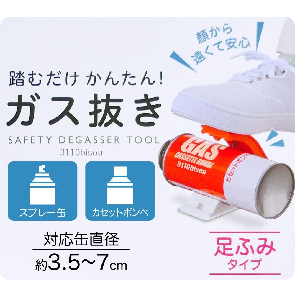 スプレー缶、ボンベのガス抜き器です。 足で踏むだけで簡単にガスが抜けます。 顔から遠いから安心して使える! スプレー缶のガス抜きが怖い人にオススメのアイテムです。 11cm 5cm 4.5cm コンパクトサイズ
