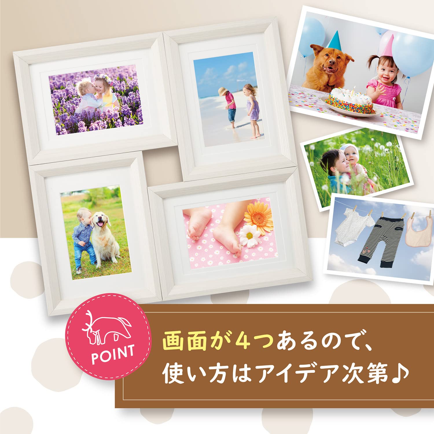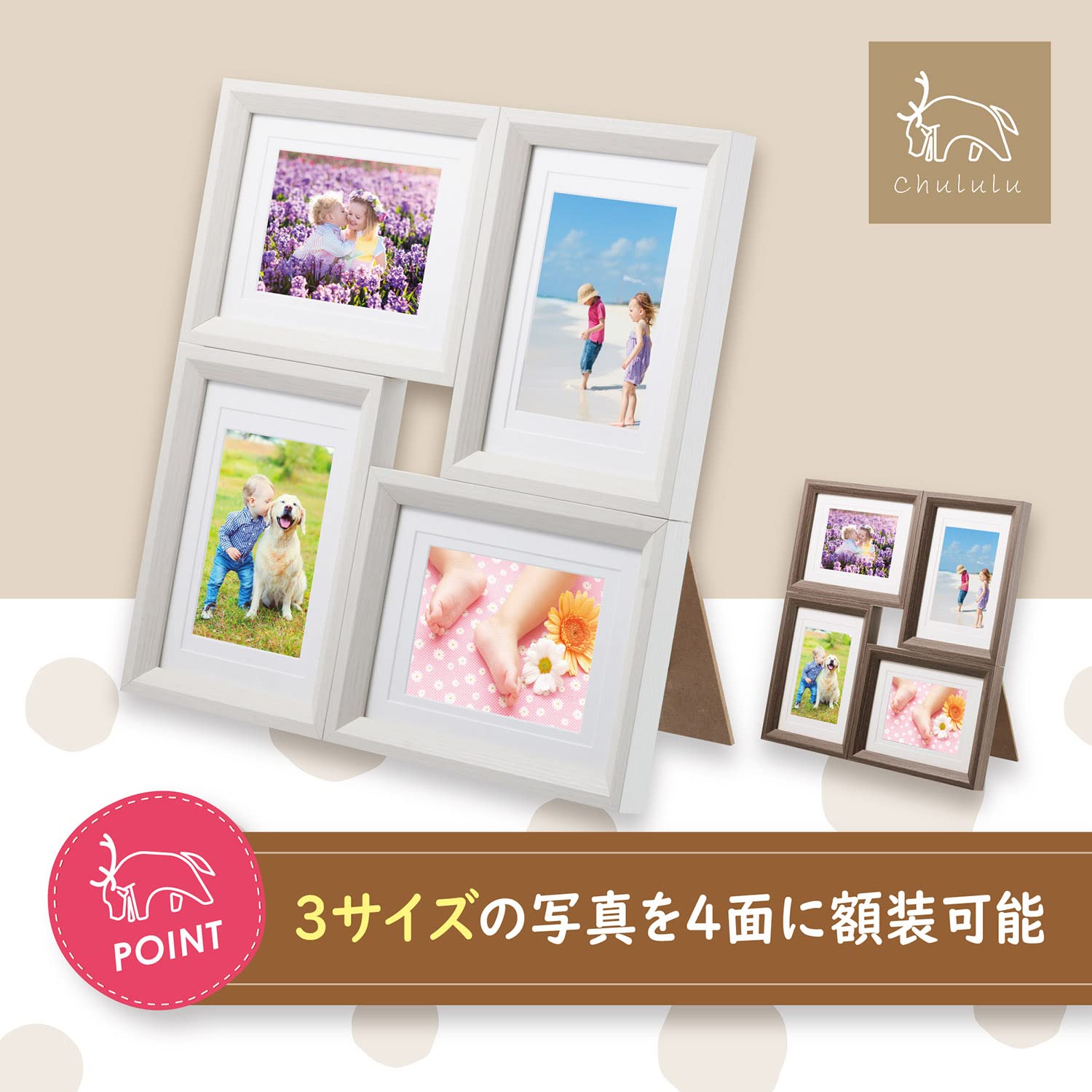 L、KG、2Lサイズの写真を最大4枚額装可能なナチュラルで品のあるフォトフレーム