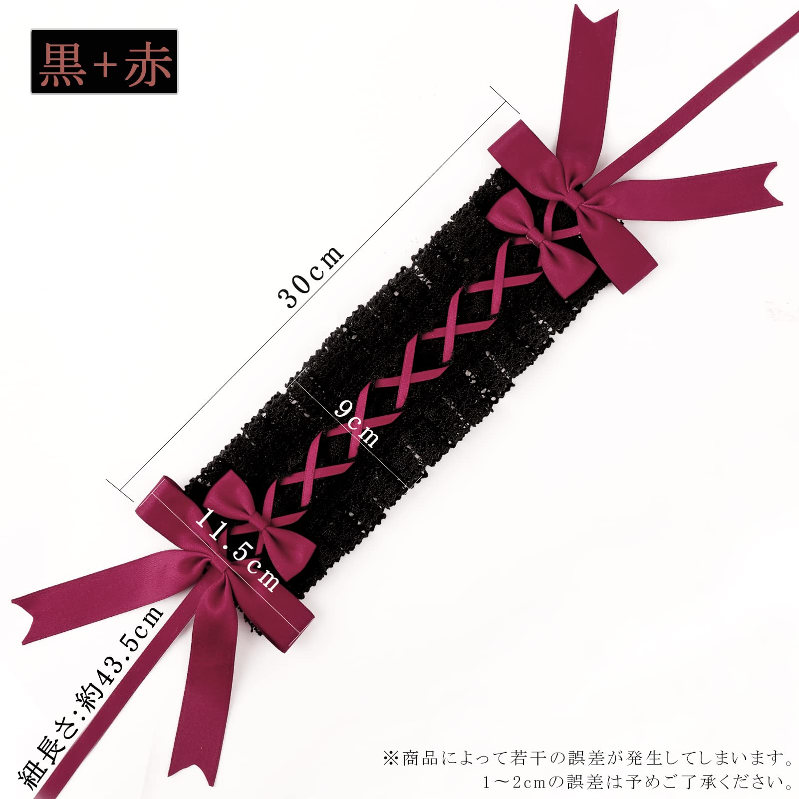 Sitengle ヘッドドレス ロリータ 髪飾り ゴスロリ ヘアアクセサリー カチューシャ レース リボン 蝶結び かわいい キュート メイドカフェ lolita 多色選択 (黒+赤)