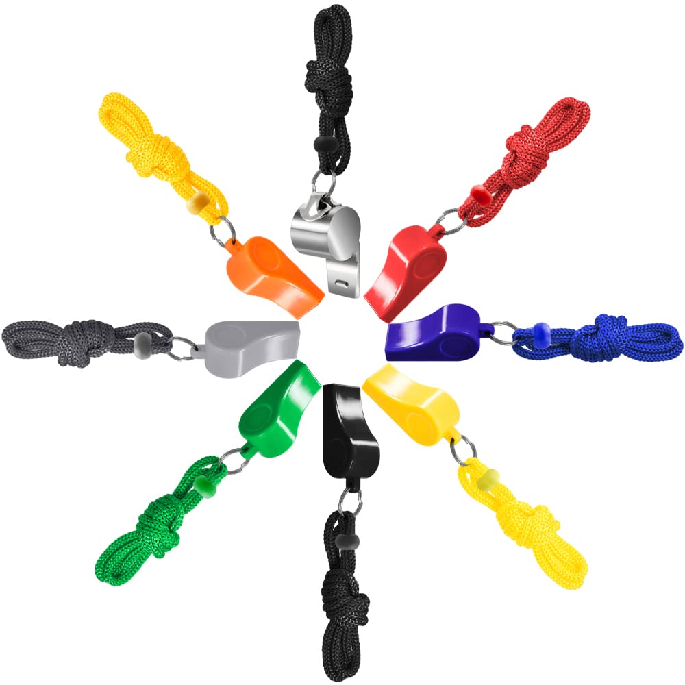 FineGood 8個 ホイッスル 審判用ホイッスル ストラップ付き 子供用 教師用 プラスチック 緊急用ホイッスル 金属製 コーチ トレーニングホイッスル