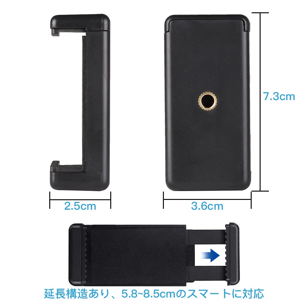 スマホホルダー 三脚ホルダー 幅6.5-11.5cmに対応 アタッチメント スマホ三脚ホルダー 携帯ホルダー 撮影 固定 スマホ アダプター クリップ (5.8~8.5cm対応)