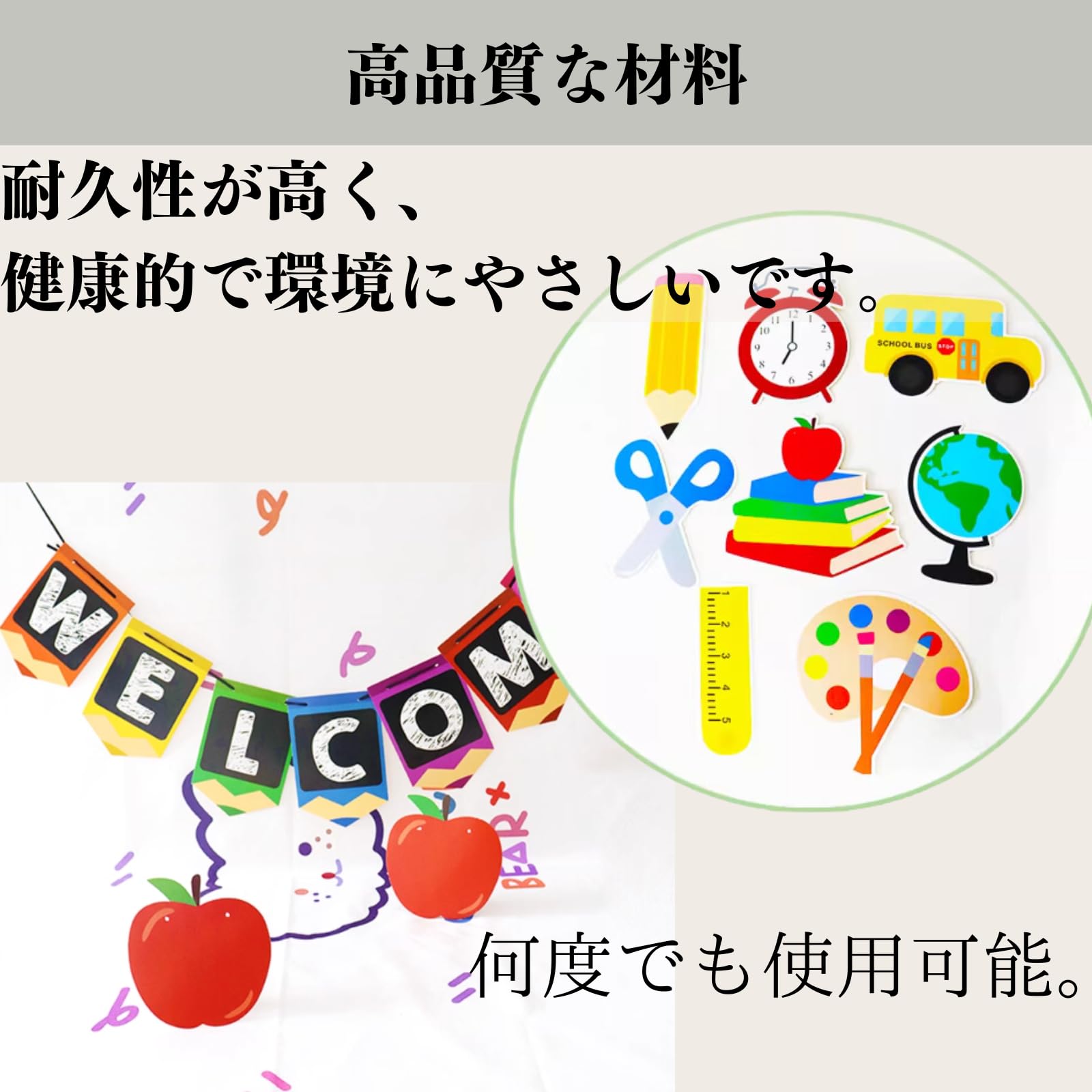 誕生祝いパーティー、保育園飾り、入園式、入学式など特別なイベントにぴったりの飾りつけセットです。カラフルなバナー、可愛らしいデザインが会場を華やかに彩ります。