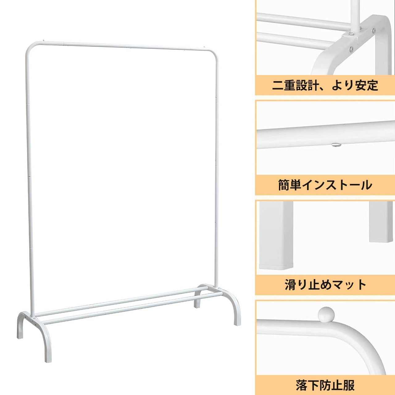【用途広い】: 洋服掛け 下部の棚には靴やカゴを置くのに十分なスペースがあります。軽量かつ便利で、ベランダでの洗濯物干しや室内での衣類収納に最適です。ガーメントラックの上部には2つの滑り止めビーズがあり、衣服の脱落を防ぎ、美しさをさらに引き立てます。