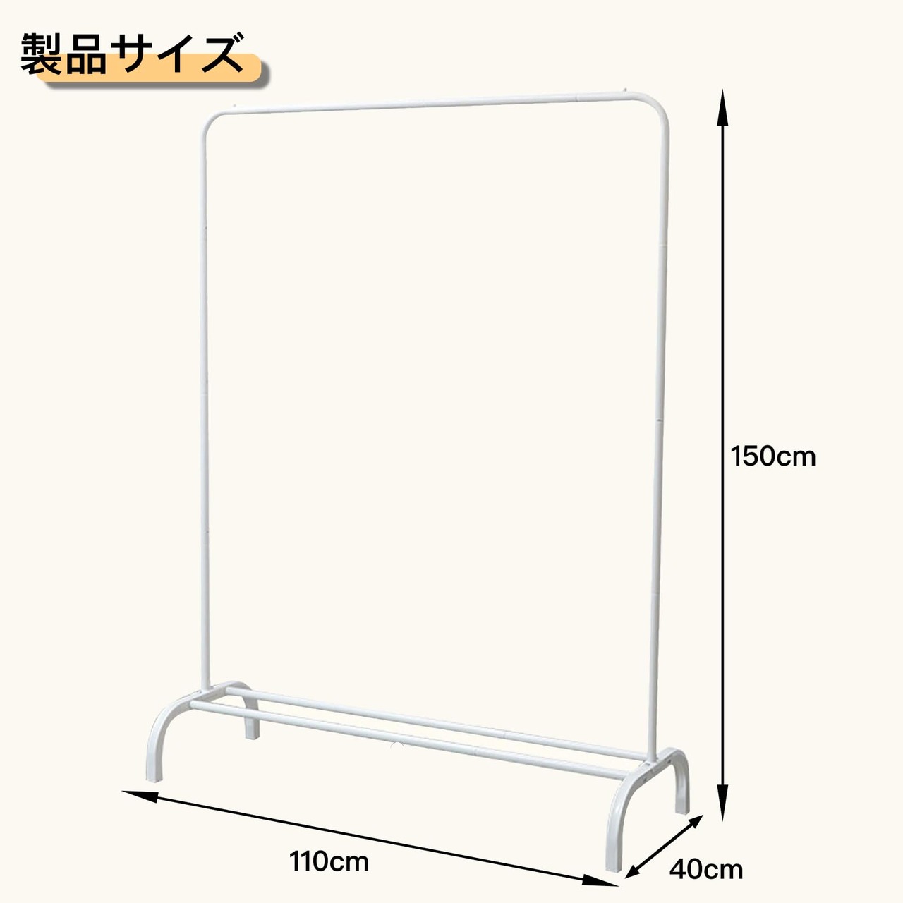 【頑丈、サイズ】ハンガーラック スチール製のため、非常に頑丈で、にしっかり安定しています。サイズ:幅110×奥行40×高さ150cm。