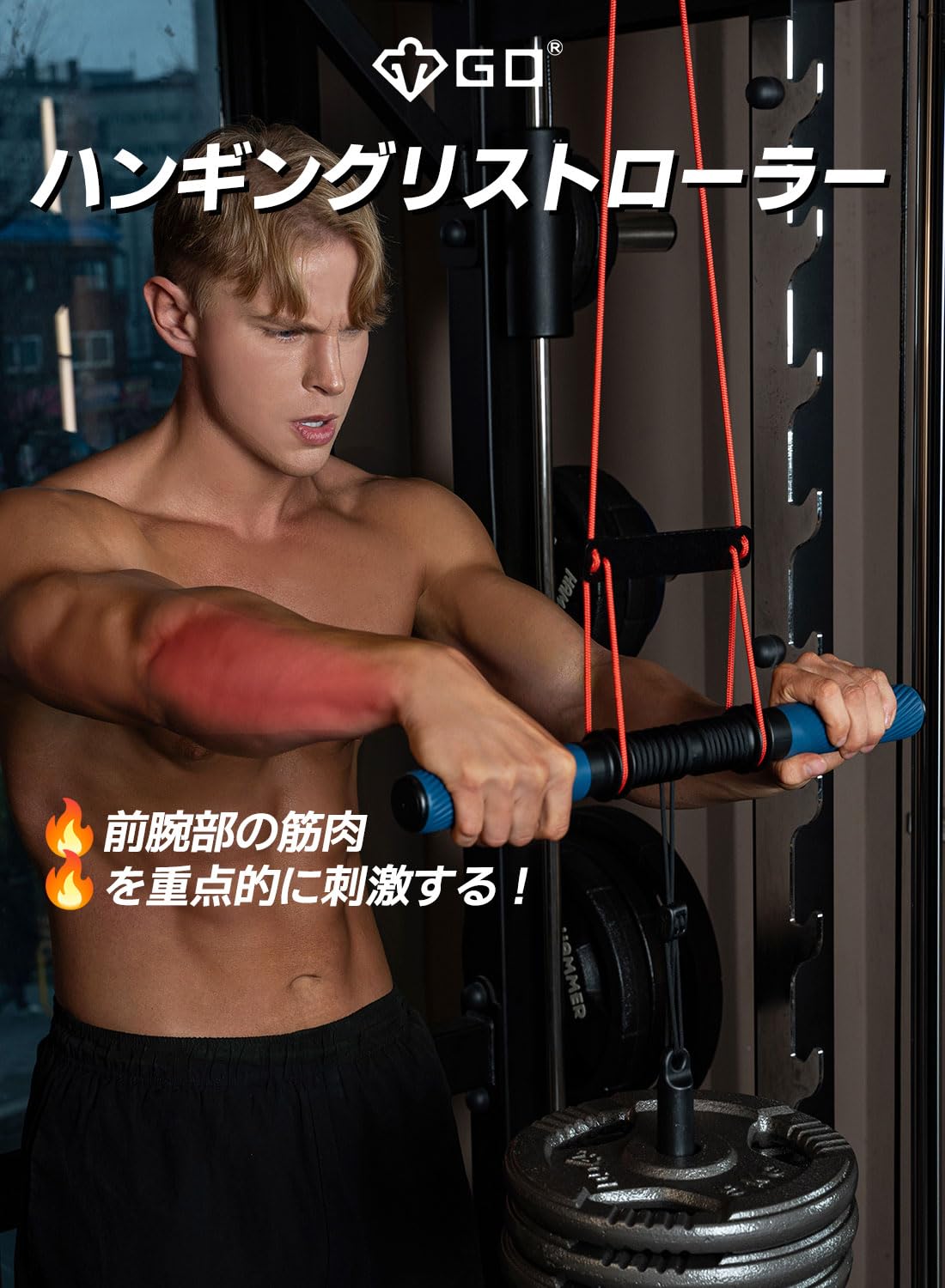 [より重い重さで、より強烈な前腕筋刺激を感じてください!] GDハンギングリストローラーで運動すれば、一般リストローラーで運動する時より3倍以上重い重さで運動することができます。 肩に無理がないので怪我のリスクは少なく、前腕筋刺激は3倍強力です。