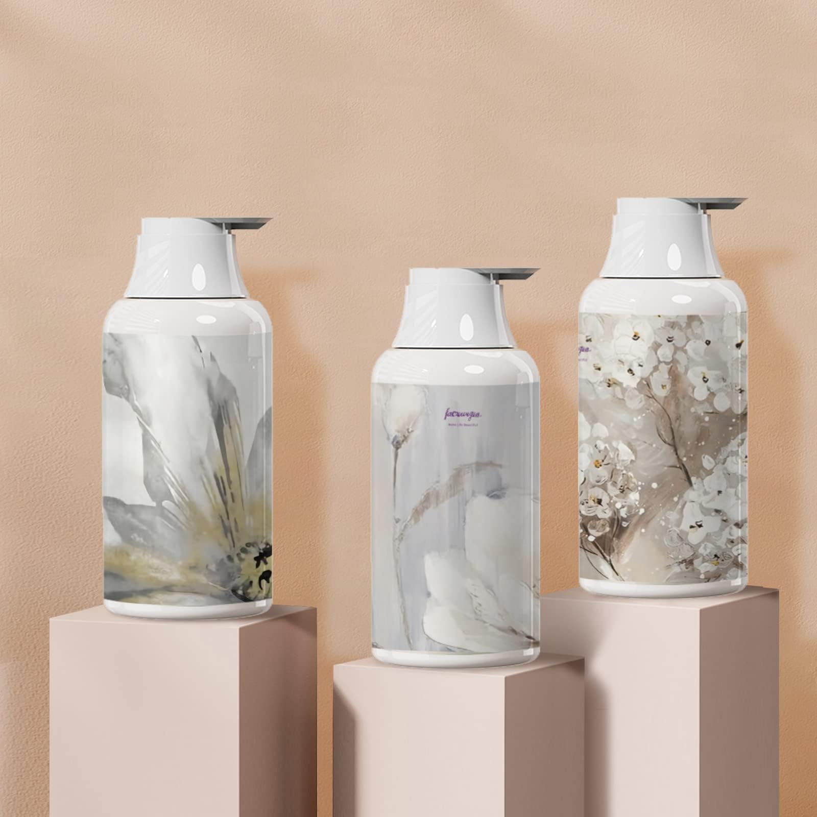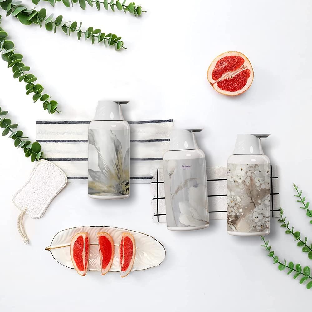 シャンプーボトル ディスペンサー 3本セット 詰め替えボトル 容器 おしゃれ 浴室 洗面所 食器用洗剤 適用 (500ml flower02)