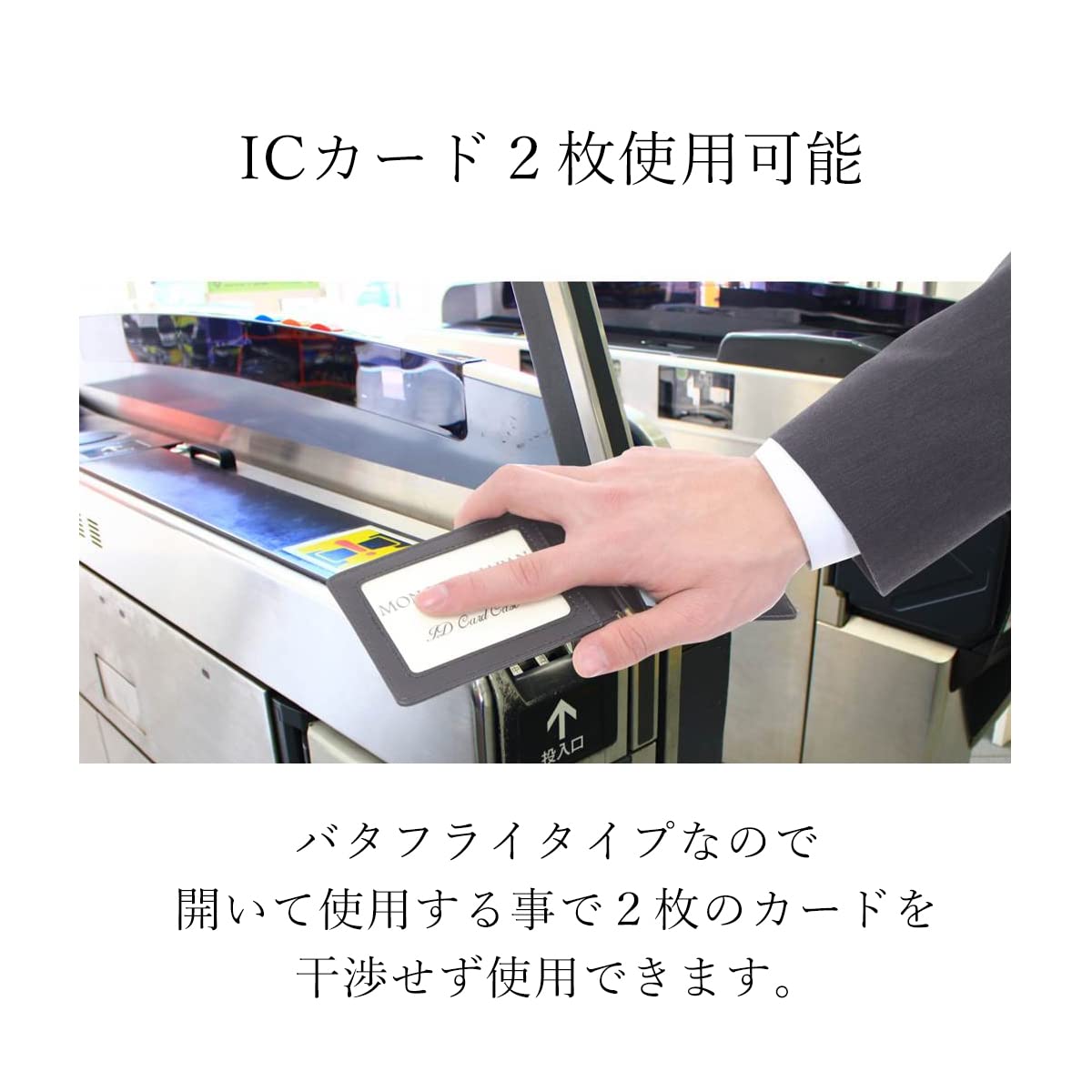 パタっと開いて使えばICカードを2枚できます。伸縮リール付きでとっても便利です。