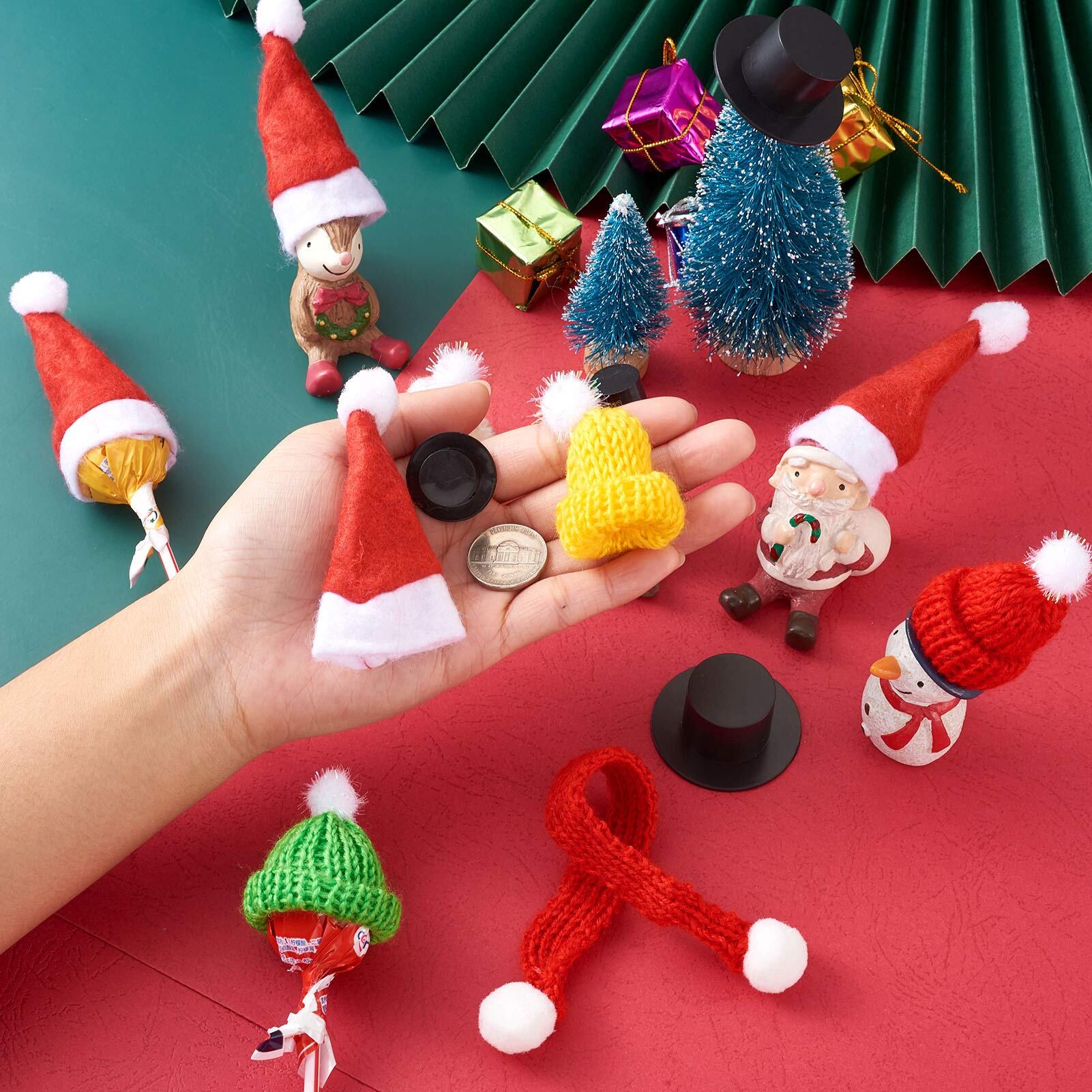Beadthoven 約120個 ミックス ミニニット帽 ポンポン付き サンタ帽子 シルクハット ミニマフラー ミニチュア ぬいぐるみ 人形用 帽子 ハット スカーフ アクセサリー パーツ クリスマス 装飾 DIY ハンドメイド 手芸材料 手作り素材 クラフト用品