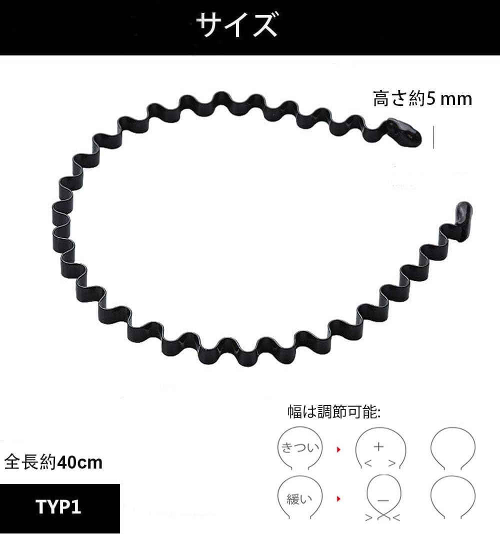 shefun メンズ カチューシャ スプリング ヘアバンド 鉄 波型 くし付き 黒 シンプル 前髪 髪飾り 2本セット JP171 (B)