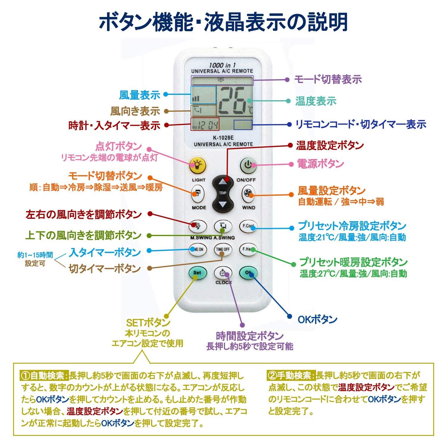YFFSFDC エアコンリモコン 汎用 各社共通1000種対応 クーラーリモコン エアコン用 ユニバーサルリモコン LEDライト機能付き 自動検索機能搭載 K-1028E
