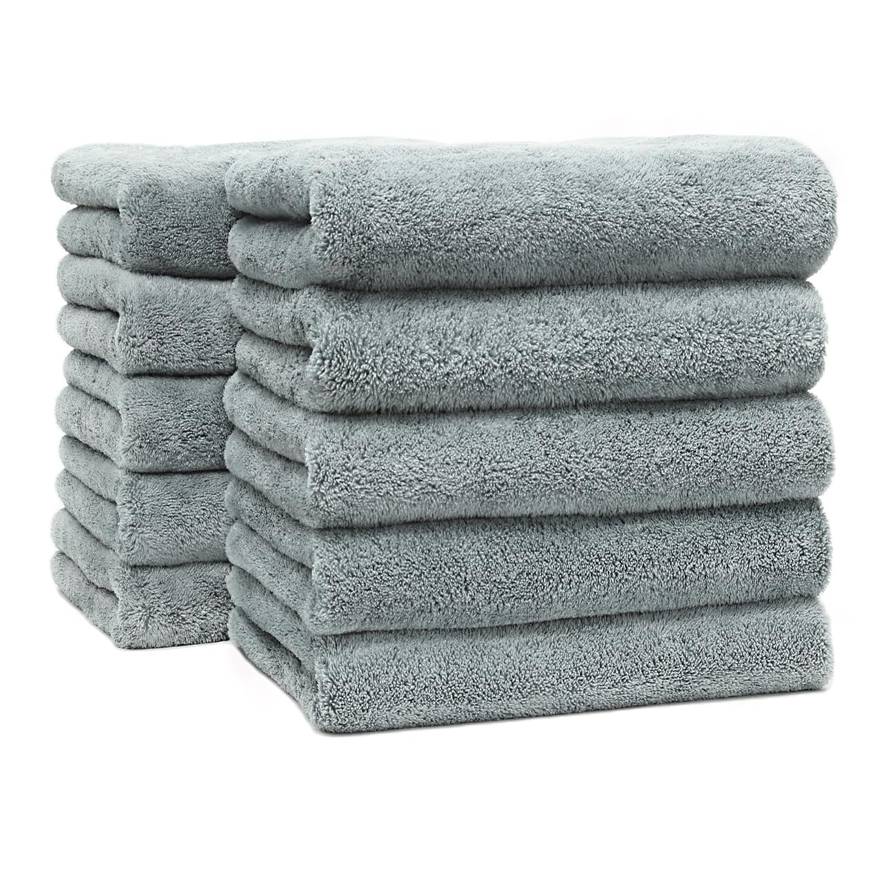 フェイスタオル 10枚セット 吸水速乾 無地 ふわふわ なめらか 速乾 耐久性 毛羽落ち少ない 引っ掛けやすい 人気 10枚 家庭用 業務用 極細繊維 抗菌 防臭 通気 (75cmX35cm ダークグレー)