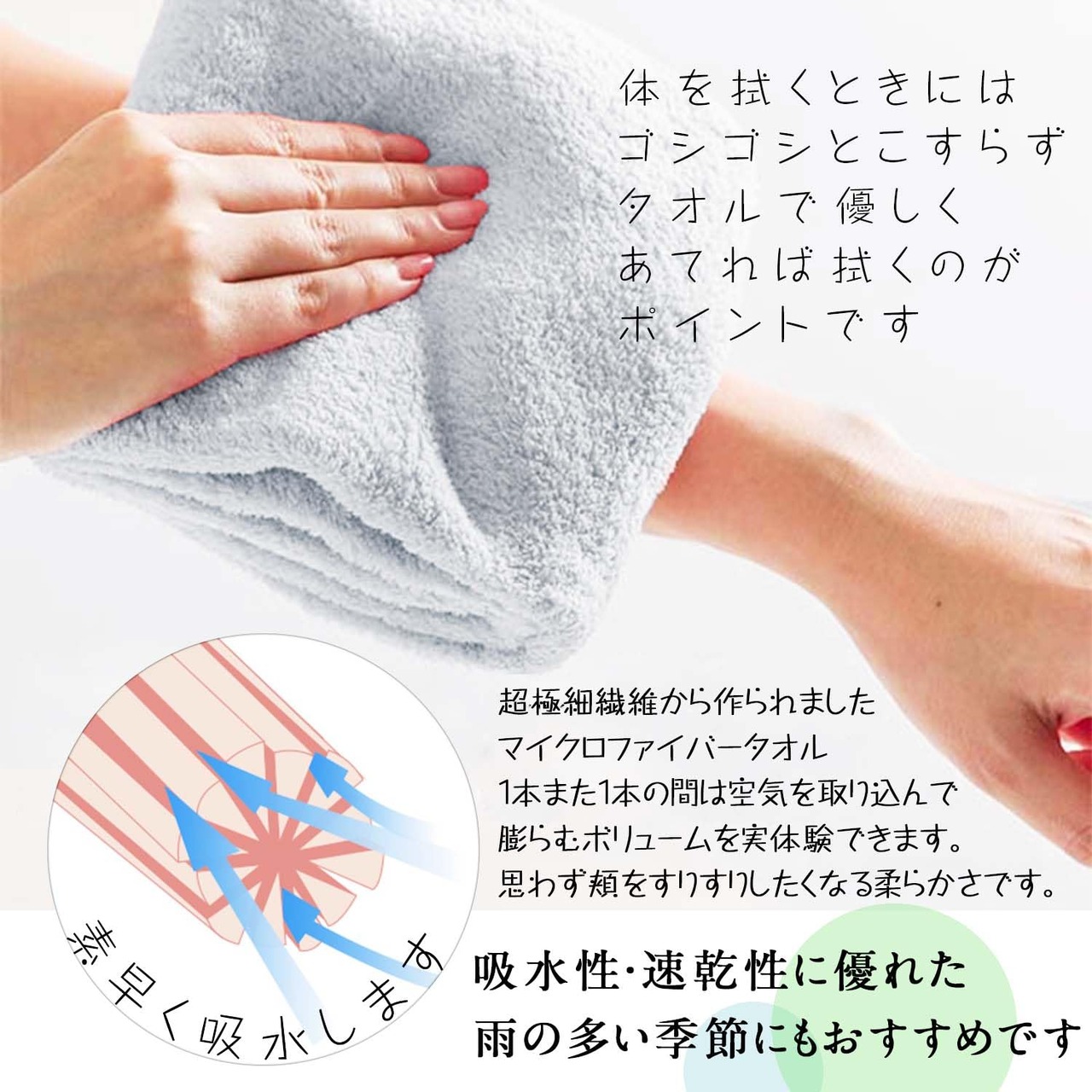 【マイクロファイバーとは】マイクロファイバーの細さは髪の毛の100分の1しかありません。繊維表面の目に見えない凹凸の間にある、細かな隙間が水分に触れたとき、毛細管現象を起こして水を吸い上げます。高い吸水力を誇るやわらかな肌触りのマイクロファイバー製の吸水フェイスタオルです。