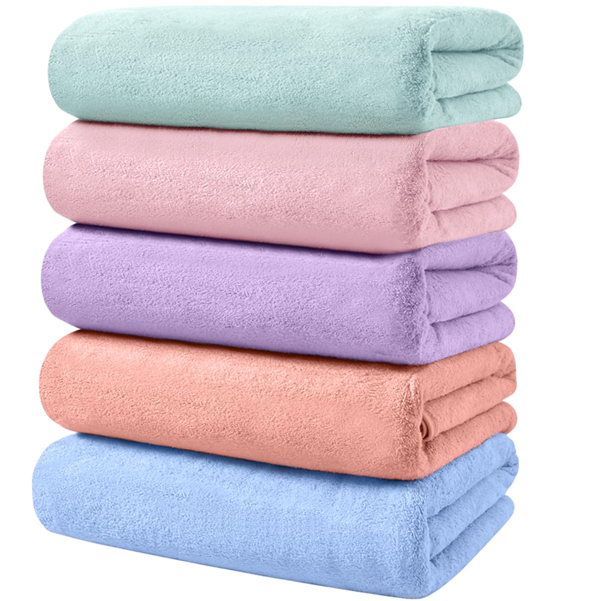 AYO バスタオル ふわふわ ホテル仕様 タオル 大判 瞬間吸水 60*120cm 5枚セット マイクロファイバー 強い吸水速乾 肌触り 5色