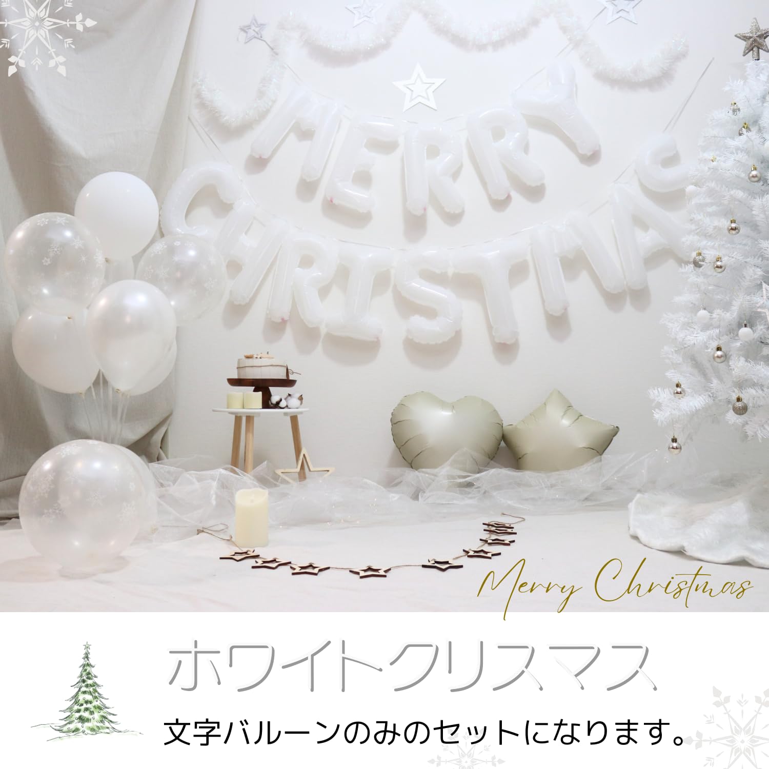 クリスマス バルーン 飾り セット 文字 風船 純白のホワイト メリークリスマス 女子会 会場の装飾 デコレーション パーティー (文字のみ, 純白のホワイト)