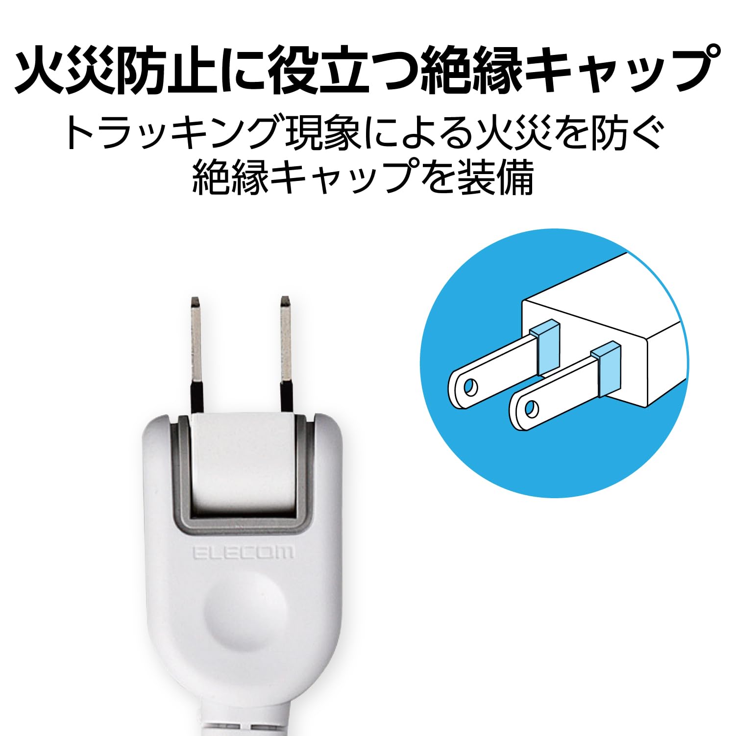 トラッキング現象による火災の防止に役立つ絶縁キャップ付きのコンセントプラグを採用しています。