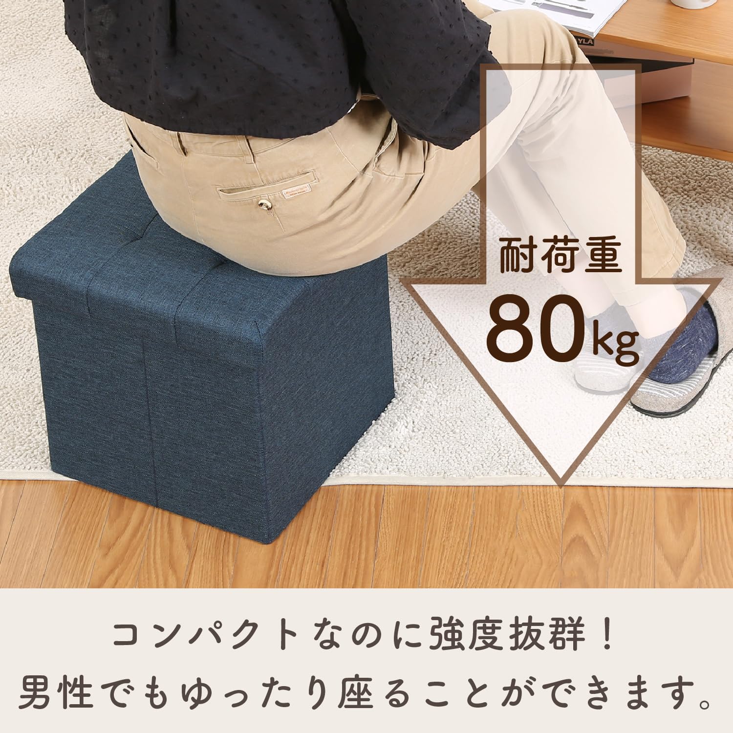 不二貿易 収納スツール 収納ボックス 幅31×奥行31×高さ30.5cm ネイビー オットマン 耐荷重80kg 折りたたみ ボックススツール ハント 85993