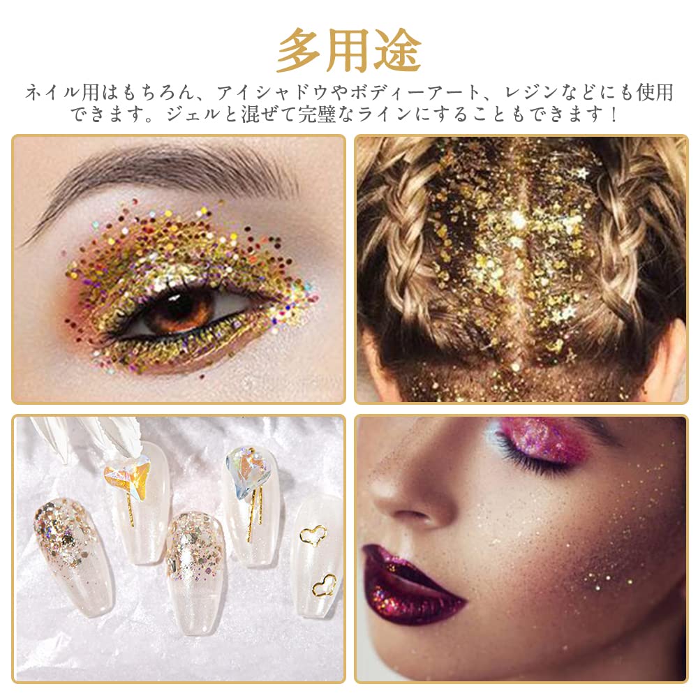YFFSFDC ラメホログラム 5色セット キラキラ ネイルパーツ ネイルアート 容器付き グリッター ラメグリッター ラメパウダー ネイルパウダー 顔飾り ヘア飾り 新年 クリスマス メイク用品 ゴールド (ゴールド)