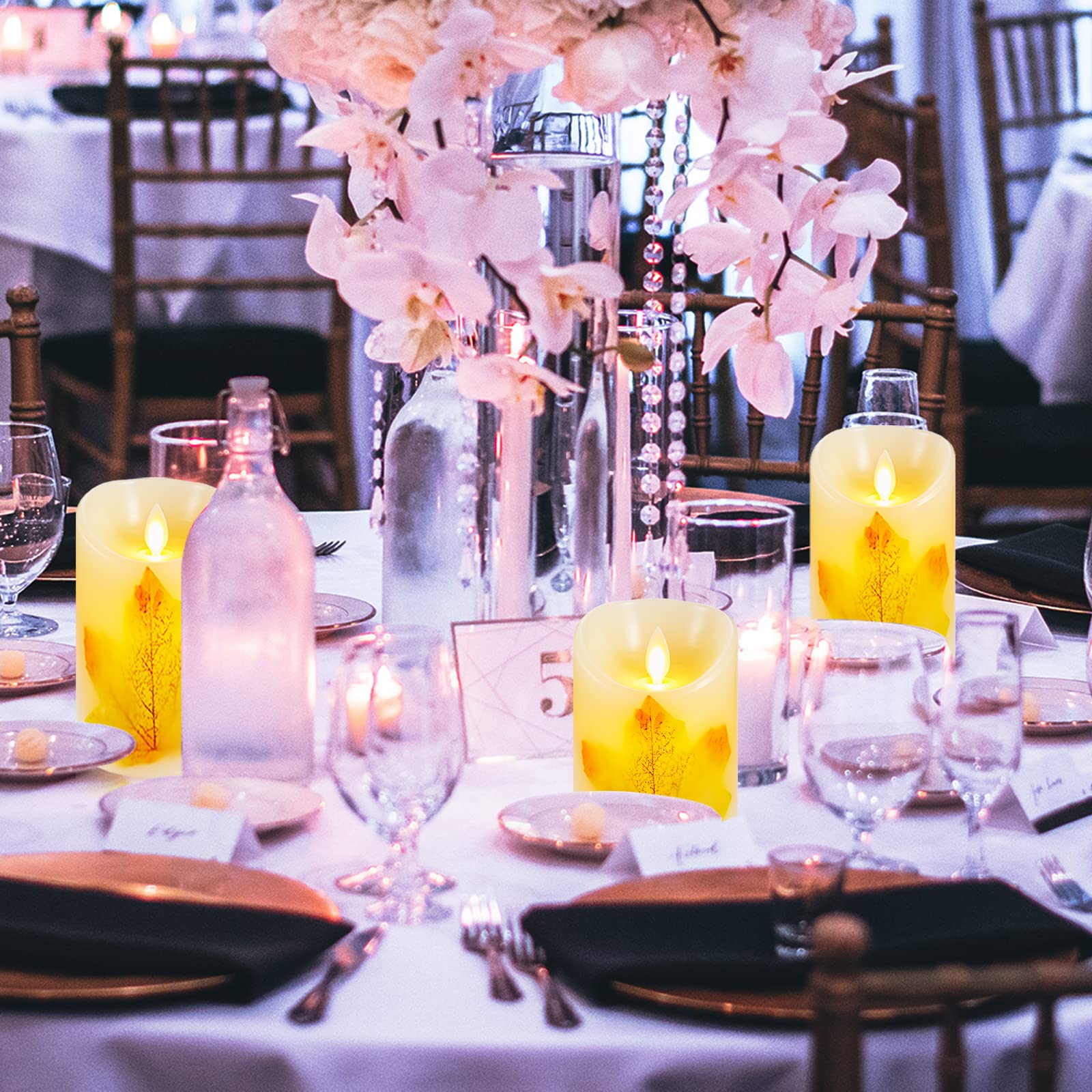 AnnTec LEDキャンドルライト ロウソク 秋の紅葉 本物の炎のようにゆらめく 暖色光 火を使わない ゆらゆら揺れる 安全 省エネ 専用リモコン付き 明るさ調整 電池式 LEDライトキャンドル (直径7.5cm×高さ12.5cm) Yellow