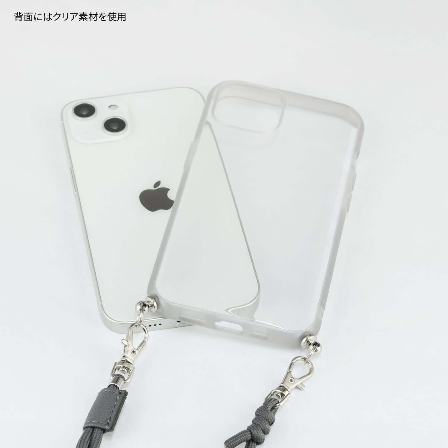 裏面を覆うiPhone14,iPhone13兼用のストラップループ付きケースです。