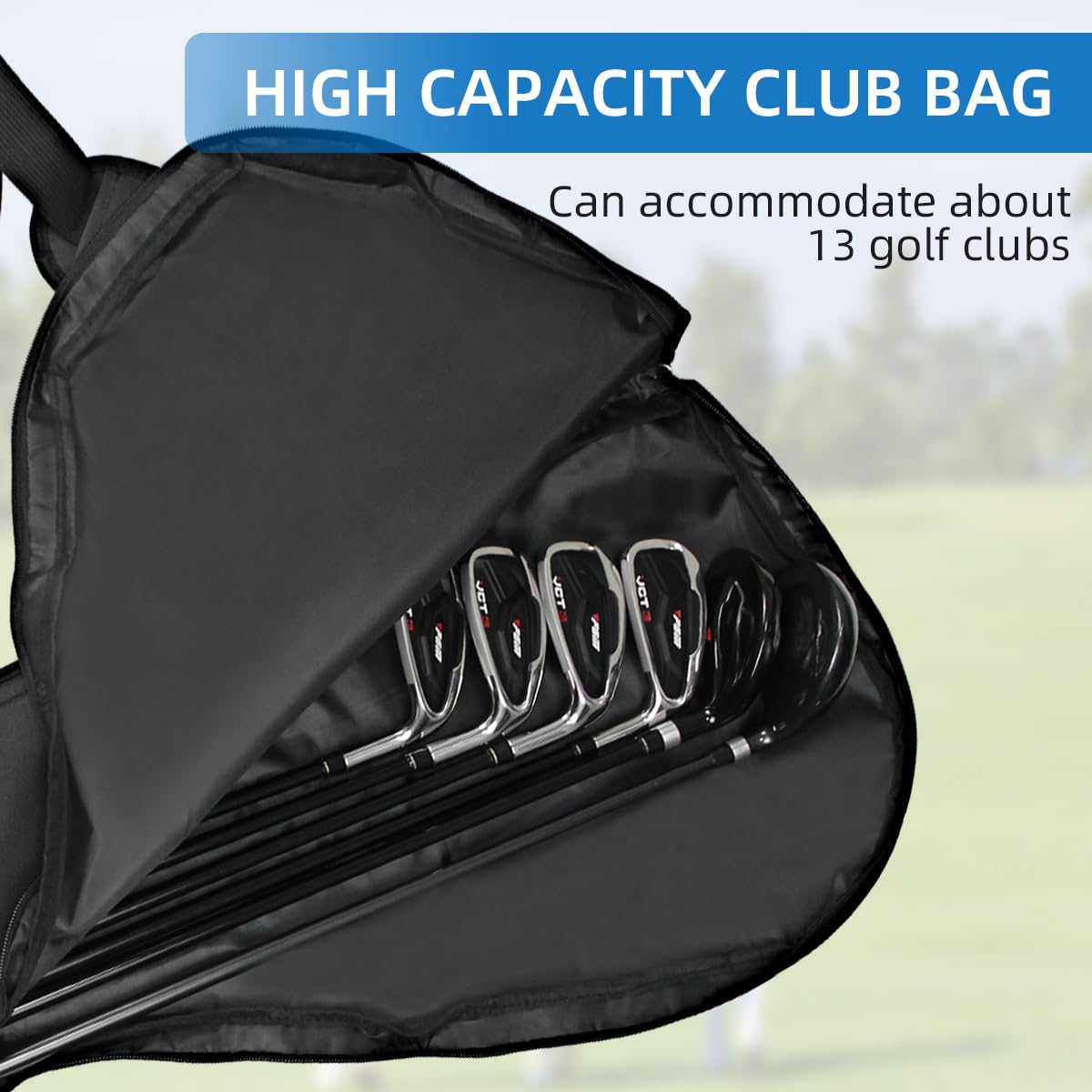 2. トラベルケース: 軽量、折りたたみ式、高容量、7~12のクラブ、ティー、タオル、ボール、ウォーターカップなどを収納できます。