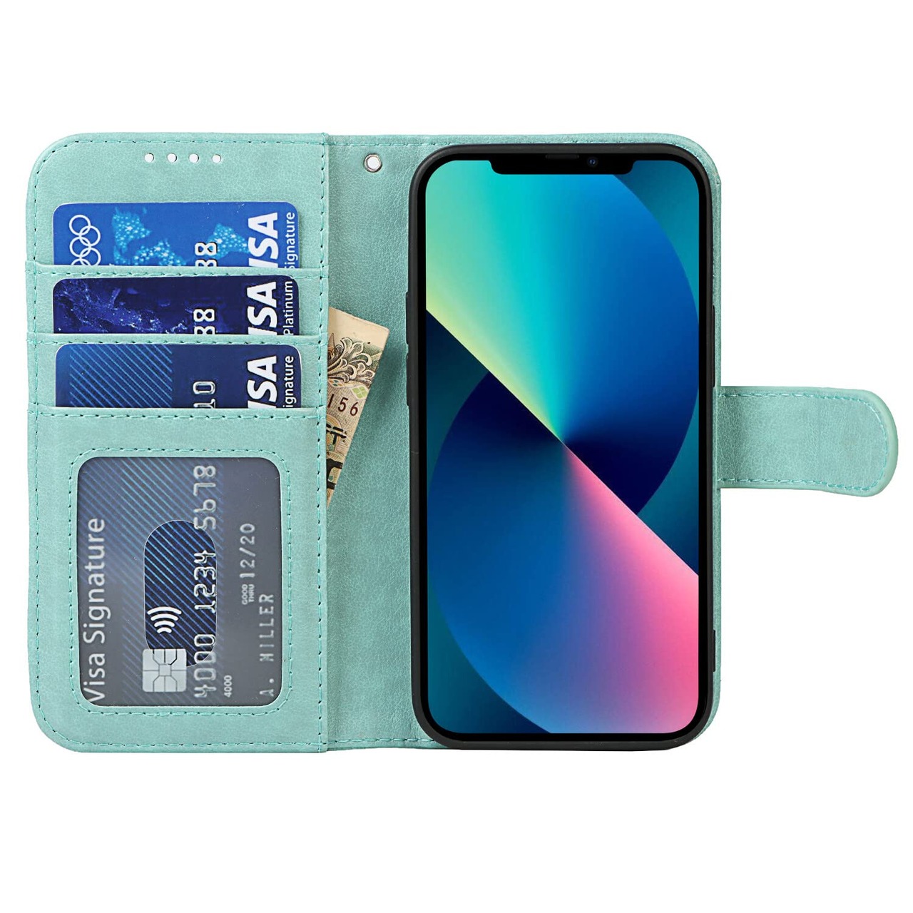 Eastwave アイフォン 13 ケース for iPhone 13 手帳型 for iPhone13 財布型 カバー ケース ストラップ付き PUレザー カード収納 横置きスタンド 機能 明るい色 内蔵マグネット—グリーン