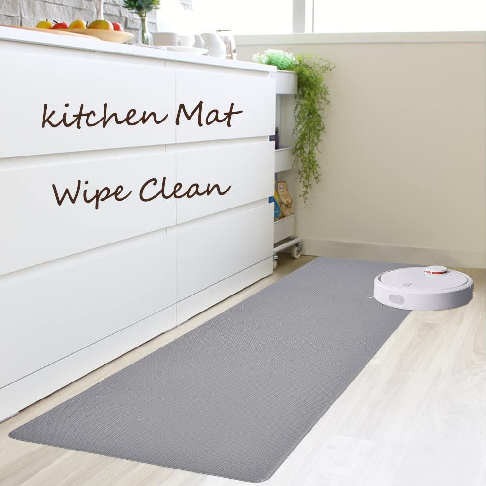 Baibu Home キッチンマット 60×240cm PVC 厚さ8mm 洗濯いらず 低反発クッション ずれない 台所 マット 防汚 拭ける グレー