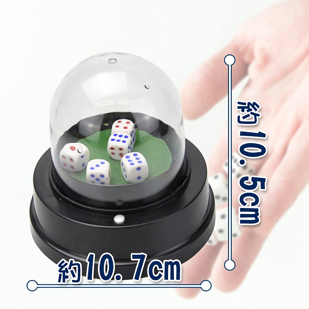【セット内容】電動ダイスカップ×1個 サイコロ×5個 【サイズ(約)】ダイスカップ:高さ 10.5cm 直径 10.7cm サイコロ:1.2cm 【必要電池】単三電池×2本※電池は付属しません。