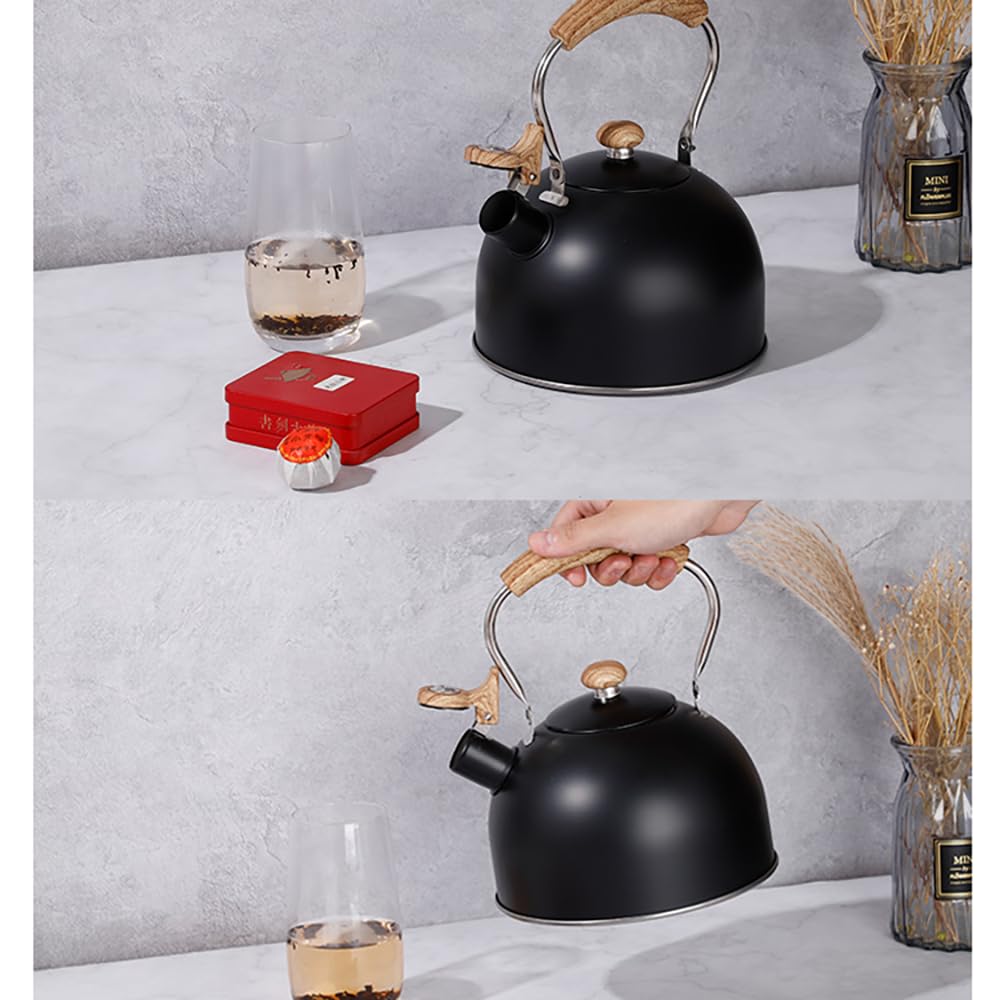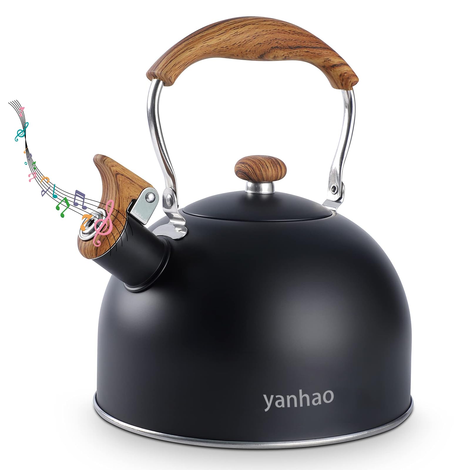 Yanhaoやかん 笛吹きケットル 2.5L 広口 ケトル ステンレス製 木目ハンドル 大容量 IH対応 やかん おしゃれ 調理器具 (黒)