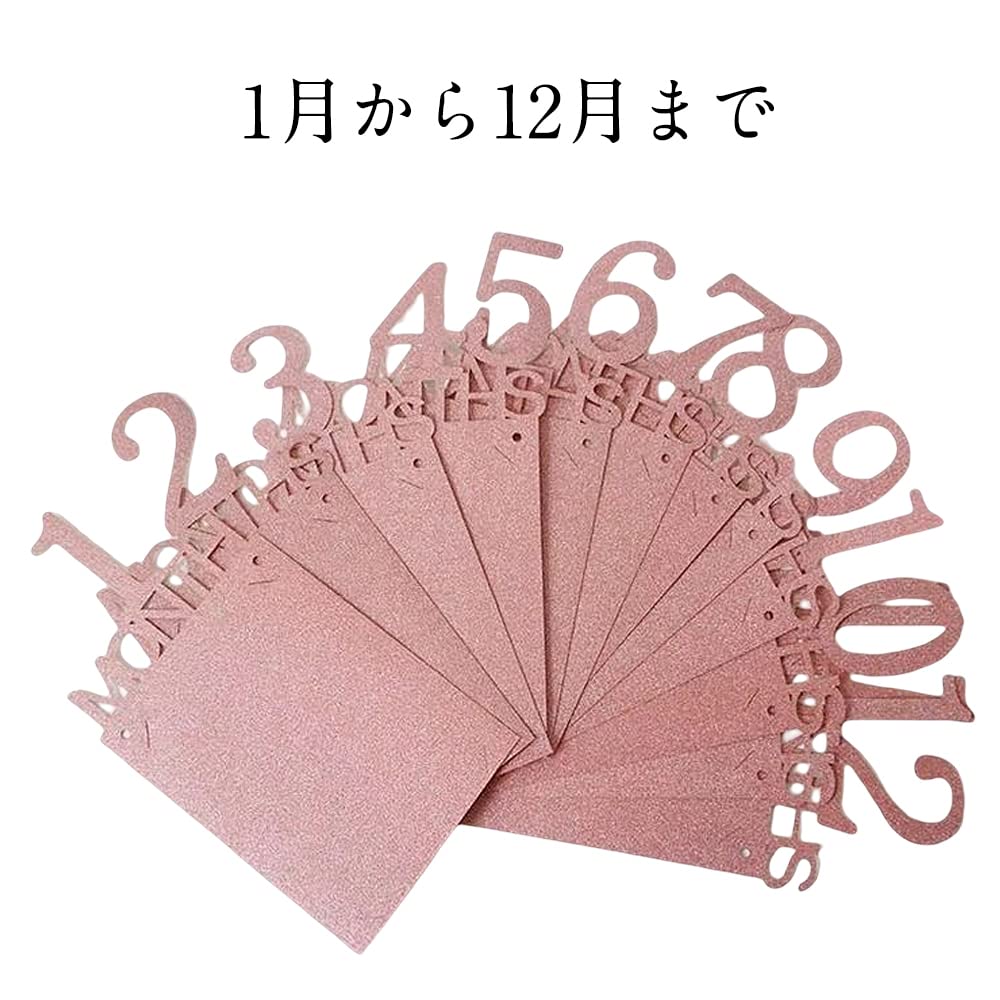 誕生日 写真 ガーランド フォトフレーム 飾り付け 1歳 12ヶ月 バースディ パーティー お祝い 装飾 壁掛け 写真フレーム 写真立て 記念日 赤ちゃん 結婚 ひも付き (ローズゴールド)
