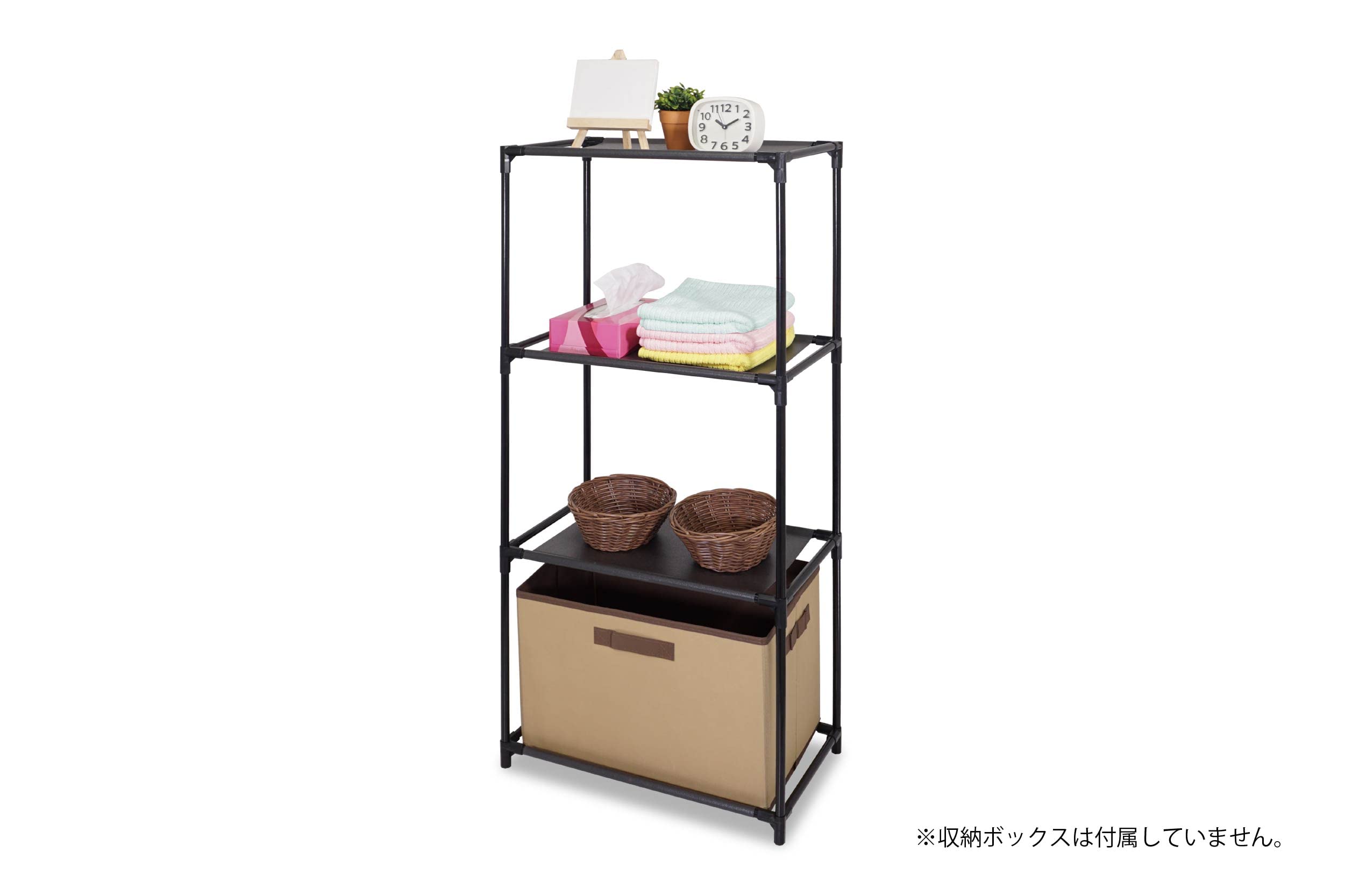 市販されている収納ボックスが収納可能な3段式収納ラック。パイプを繋げるだけなので工具不要、簡単に組み立てれます。お部屋のレイアウトに合わせて高さを2段式にも変更可能。タオルを置いたり、小物を置いたり様々なインテリアに対応できます。