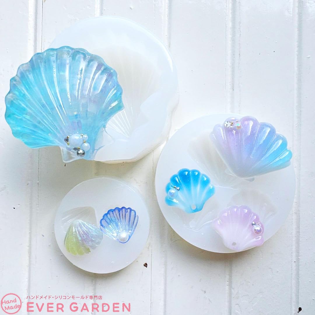 【Ever garden】 貝 3個セット 海 貝殻 レジン シリコンモールド ネックレス アクセサリー パーツ 作成 UVレジン オルゴナイト エポキシ樹脂 樹脂粘土 型 抜き型 キット 道具