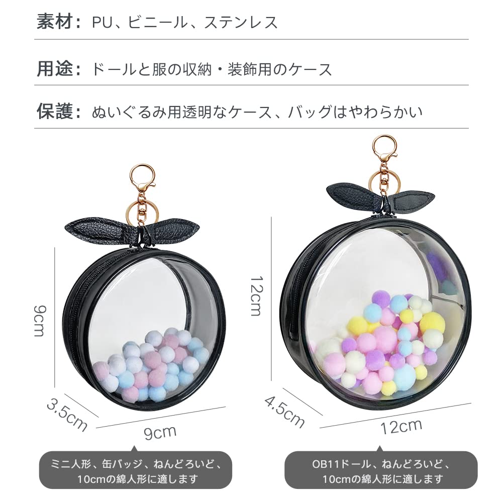 外観:透明なPVCを採用して、両面透明、耐久性があり、ケースは丸い、ファスナーはPU製可愛い兎耳付きです。キーホルダー付、カバンにひっかけるデザイン。