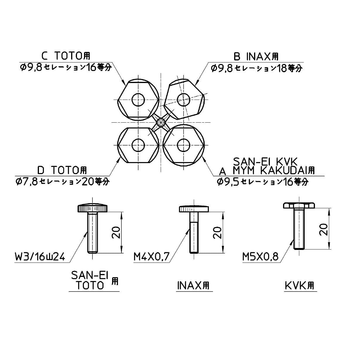 付属のアダプター・ビスを使用することで他メーカーの水栓に取り付けられます。