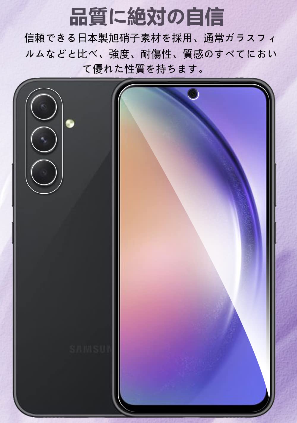 【2+2枚セット】Galaxy A54 用のフィルム ギャラクシー A54 用のカメラフィルム【Huy】Samsung Galaxy A54 5G 用の 液晶保護フィルム 【ガイド枠付き】 強化ガラス フィルム 硬度9H 超薄 2.5D 耐衝撃 撥油性 超耐久 耐指紋 飛散防止処理 Samsung Galaxy A54 用のガラスフィルム + レンズ保護 フィルム 硬度9H 気泡ゼロ 高感度 高透過率 衝撃吸収