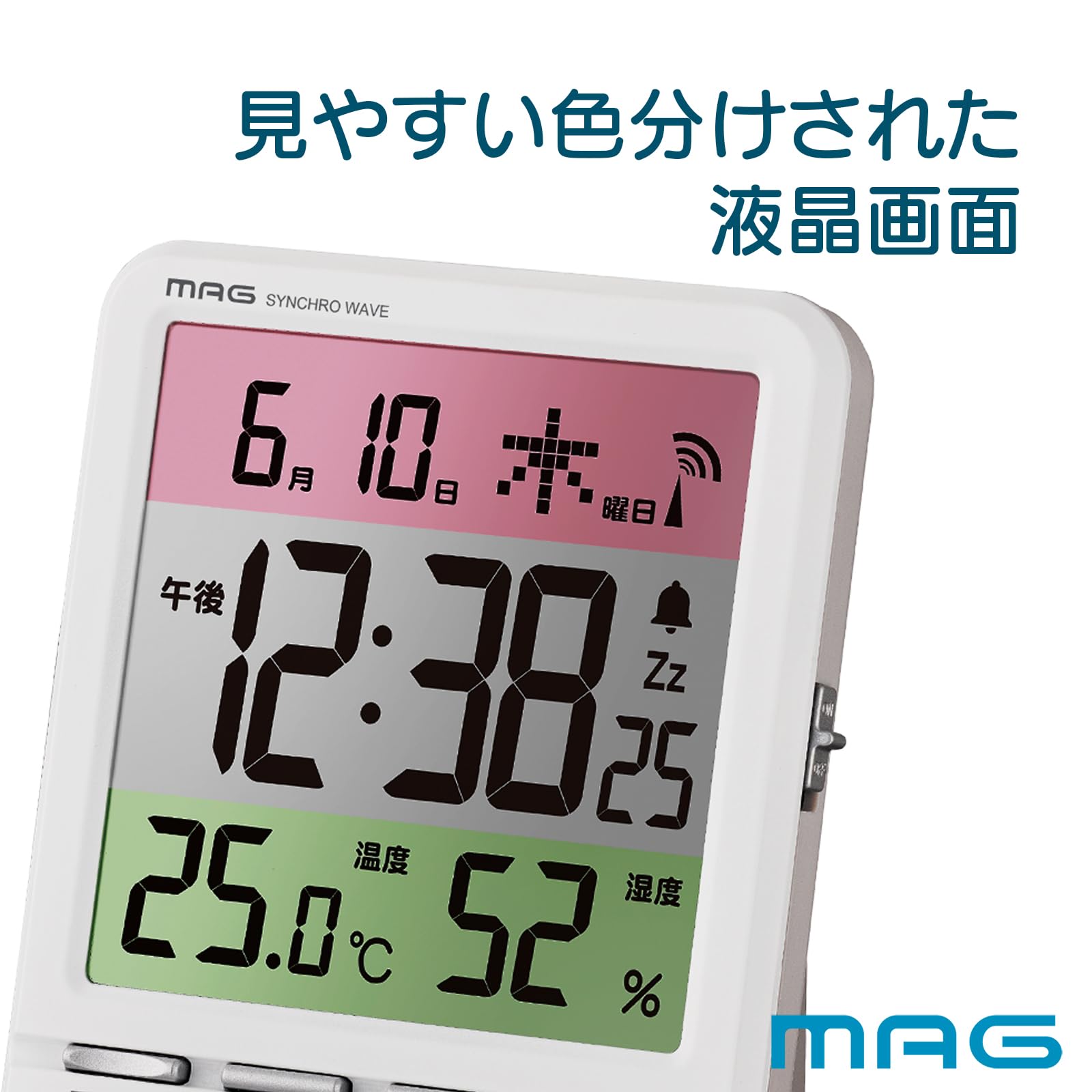 MAG(マグ) 置き時計 電波 デジタル スペクトル 温度 湿度 日付 曜日表示 ホワイト T-751WH-Z