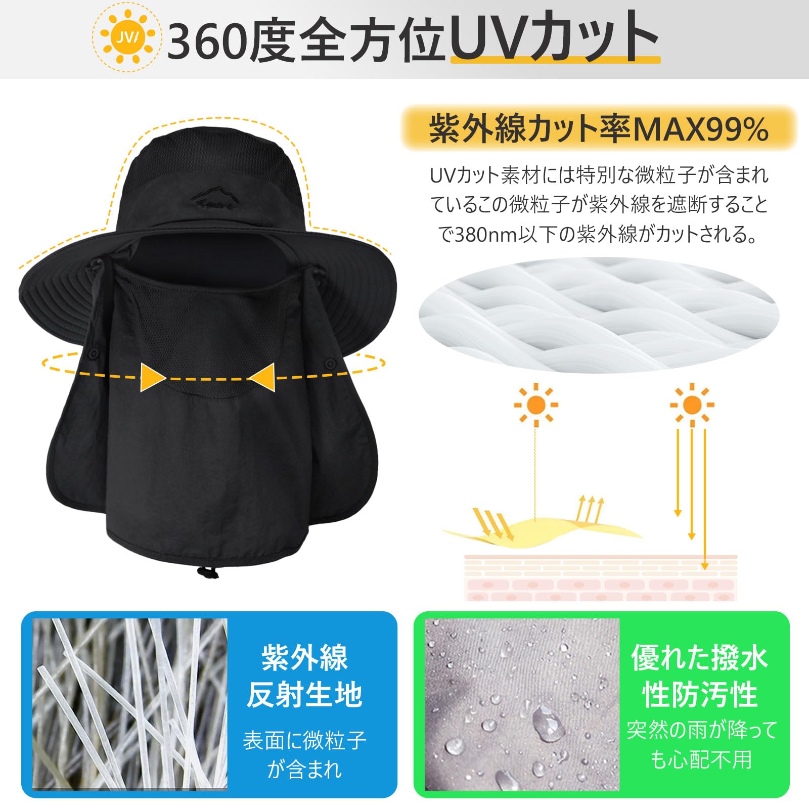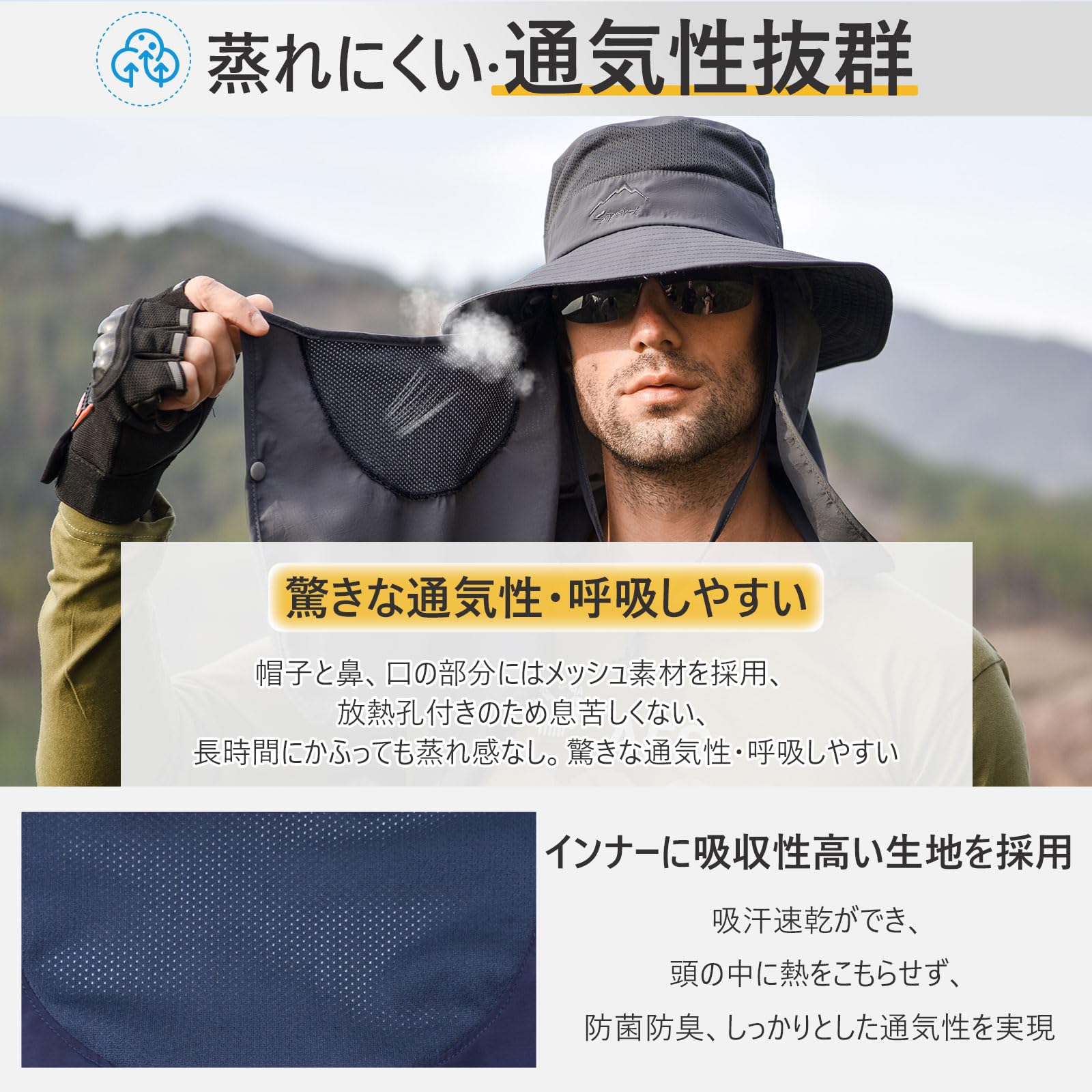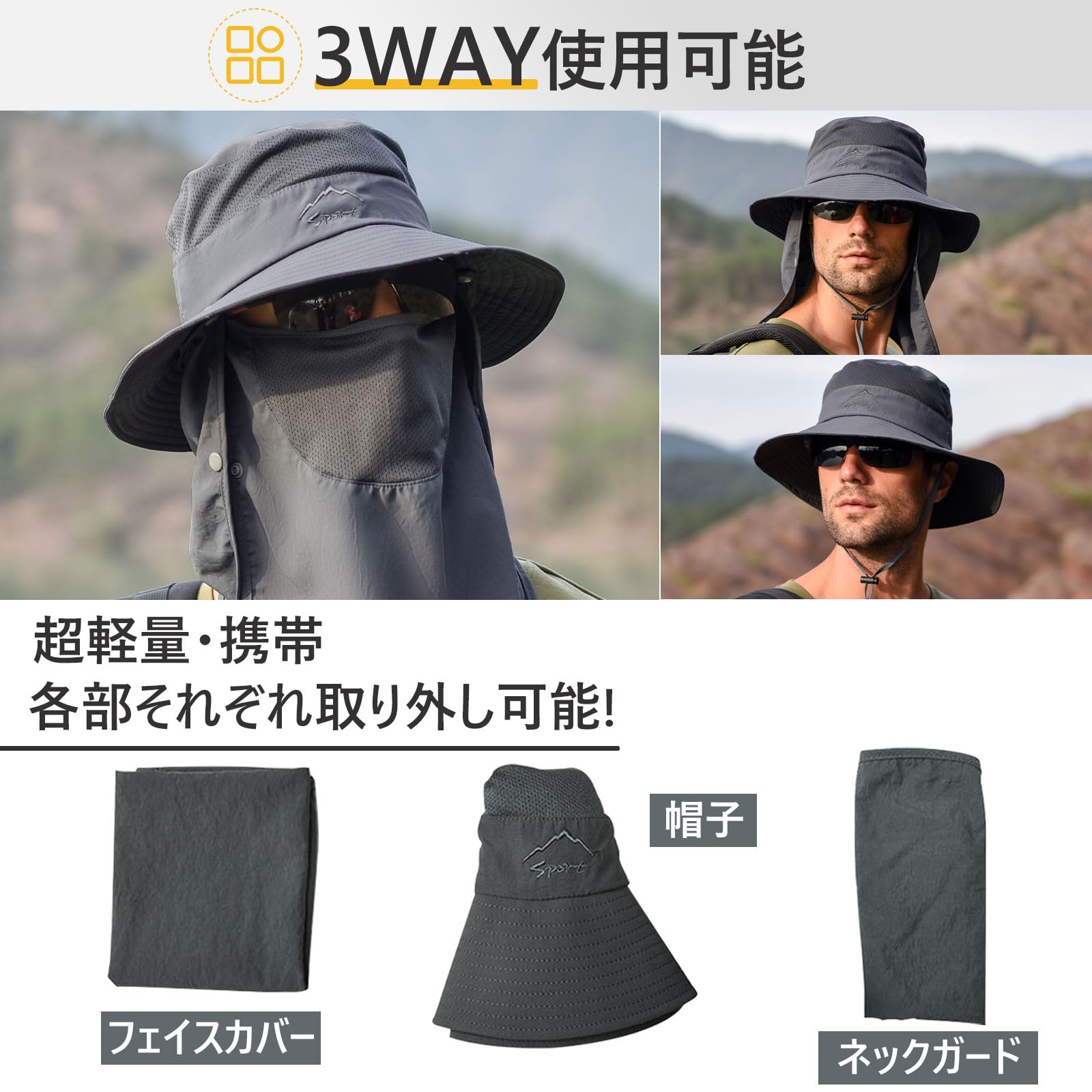 [Goture] フェイスカバー サファリハット 帽子付き 釣り フィッシングハット 顔カバー 登山 日除け帽子 メンズ 農作業用 撥水加工 UPF50+ UVカット 速乾 軽薄 メンズ レディース