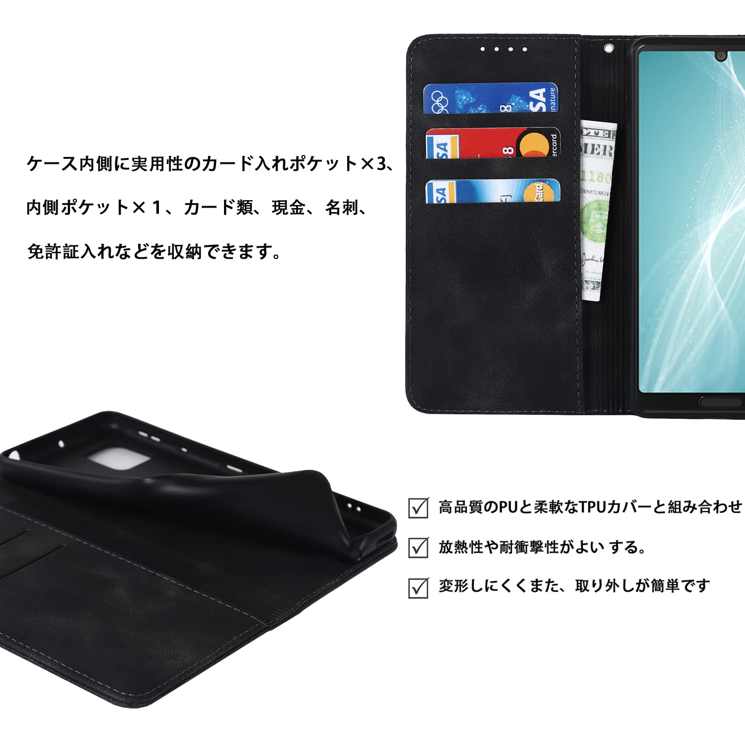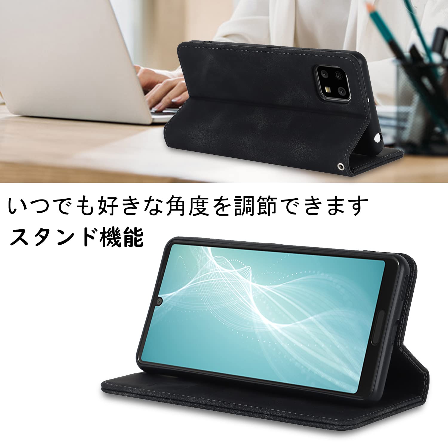 Havaya AQUOS Sense4 ケース aquos sense5g ケース aquos sense4 lite ケース 手帳型 ストラップ SH53A sense4 basic 耐衝撃 docomo sh-41a SHG03 au シャープ SH-M15 SH-RM15 SH-M17 Sharp A003SH カバー SoftBank カード収納 スタンド機能 スエードの質感-ブラック