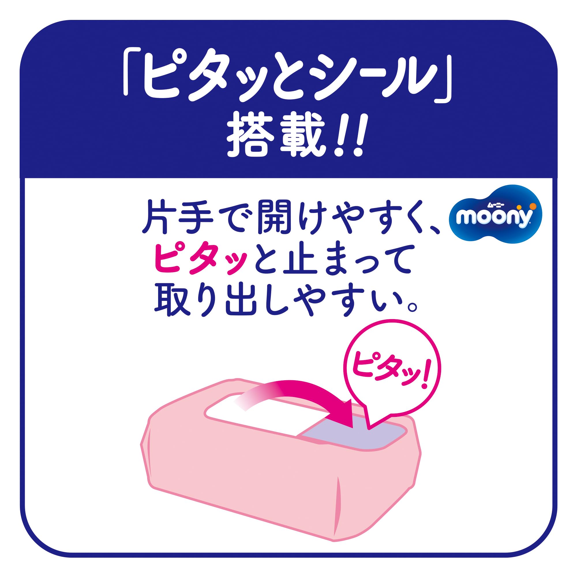 水分たっぷりでしっかりふける。水分たっぷり層にうんちなじみ成分を配合しているので、時間が経ったこびりつきうんちにもサッとなじんで、こすらずするりんっ! とふいてあげられます。限定品。