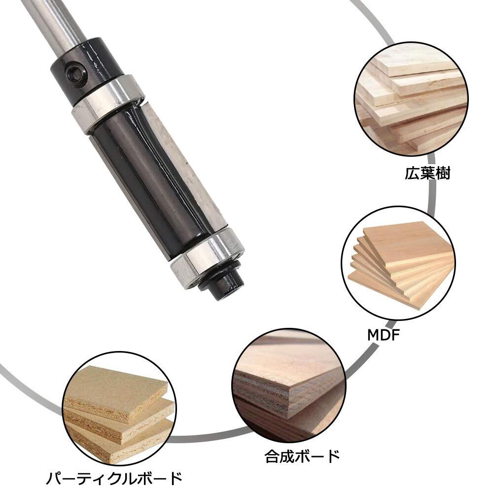 Bestgleトリマービット目地払いビット ベアリング超硬トリマ・ルータービット6.35mm軸径トリマーアクセサリガイドべアリング付ストレートビット木工用ルータービットセット