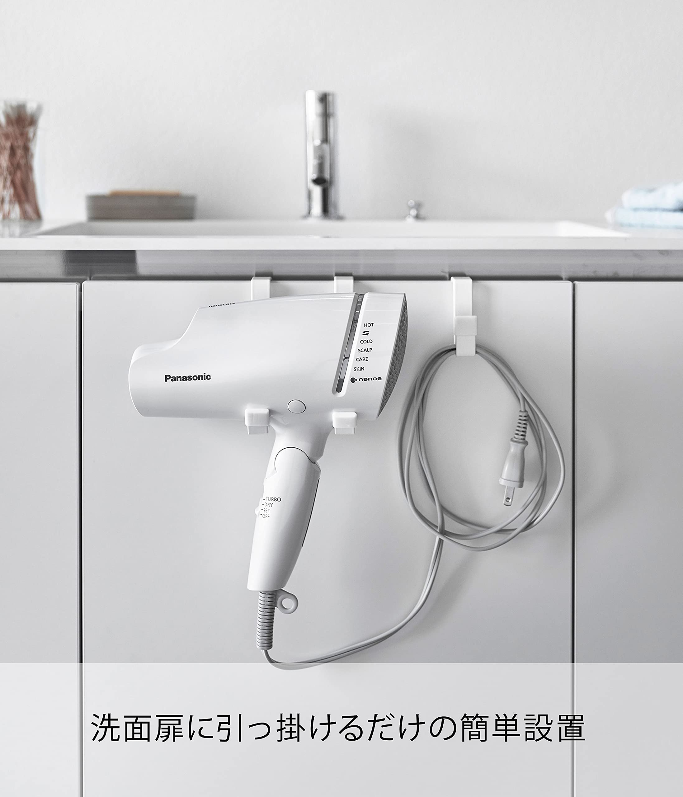 ドライヤーを掛けるだけの簡単収納。