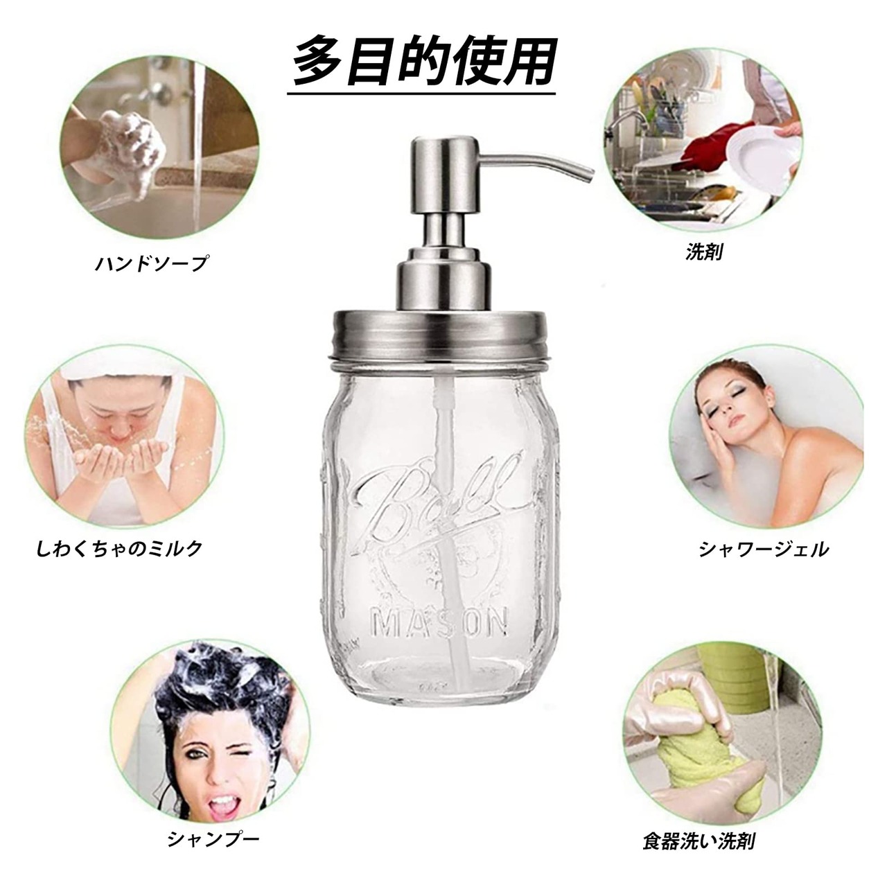 16オンス透明ガラスメイソンジャーソープディスペンサーステンレス鋼ポンプ19*8cm