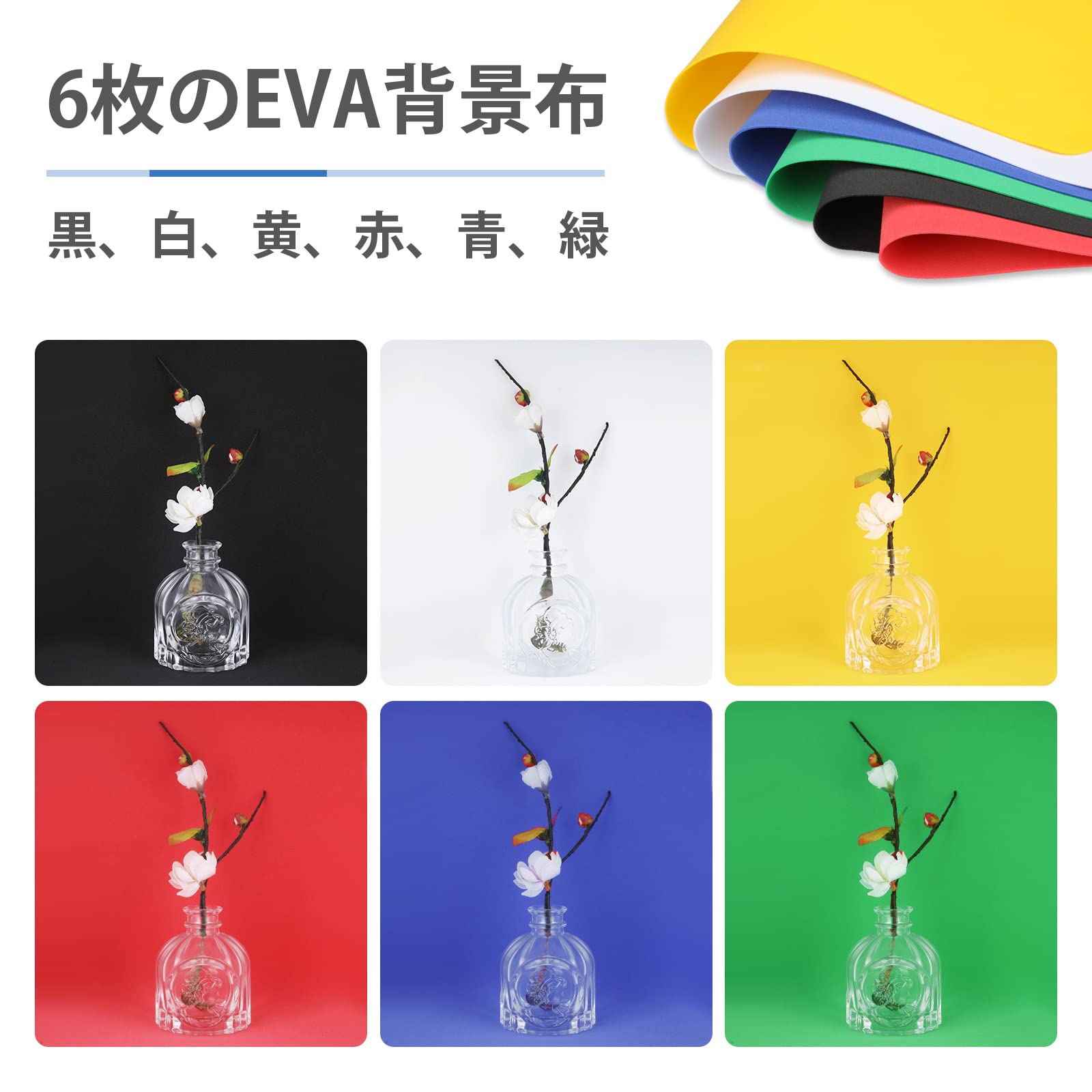 6色背景付き(青/黄色/白い/黒/緑/赤)、撮影対象により、いつでもどこでも異なる背景を提供します。ブログに載せる写真の撮影、オークション用商品の撮影、ホームページ作り、店舗のちらし、メニュー作成等におすすめします。英語のマニュアルが添付されているので、弊社に連絡して日本語の電子版のマニュアルを提供することができますよ!
