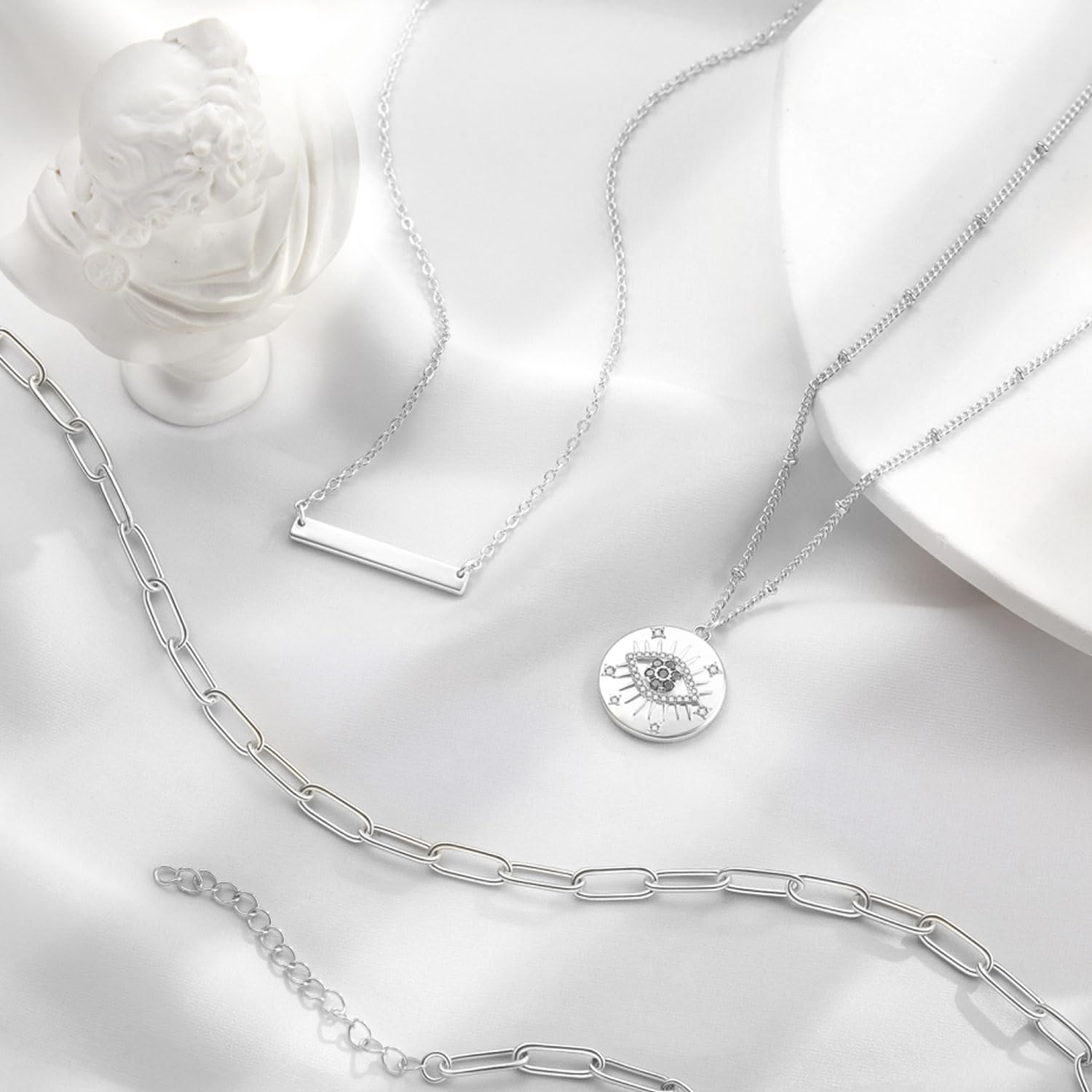 チェーン アクセサリー用チェーン 長さ約5メートル 幅1.5mm ジュエリーチェーン 小豆タイプ リングチェーン ジュエリー用 クラフト手作り用品 DIY用 ハンドメイド アクセサリーパーツ 基礎パーツ ロブスター・クラスプ10個とジャンプ・リング30個付き (銀色)